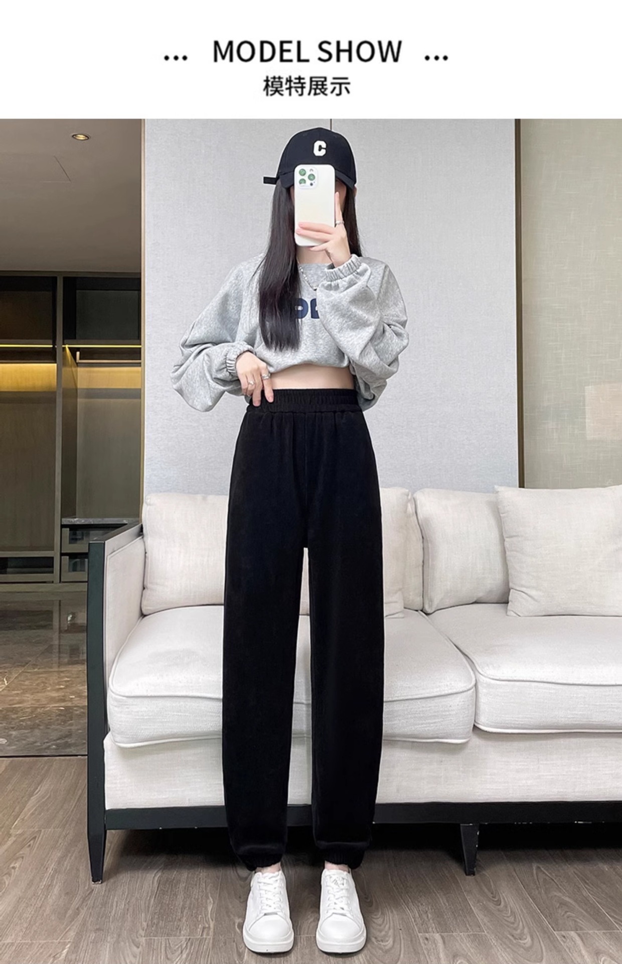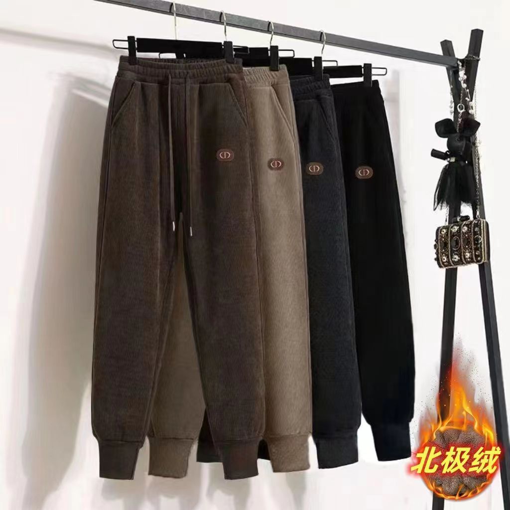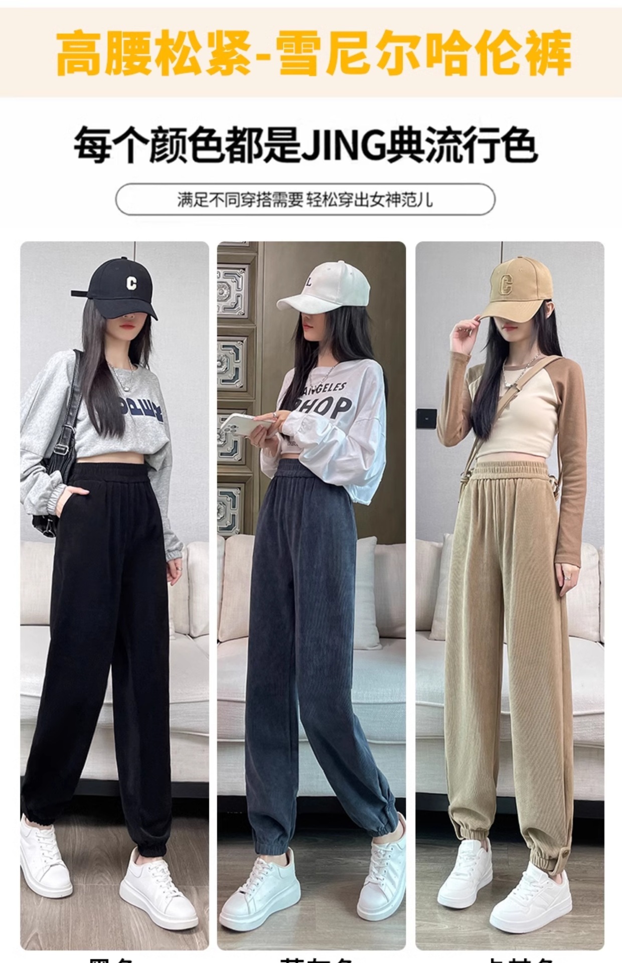 加绒加厚灯芯绒女裤秋冬小个子雪尼尔运动裤宽松束脚哈伦休闲卫裤