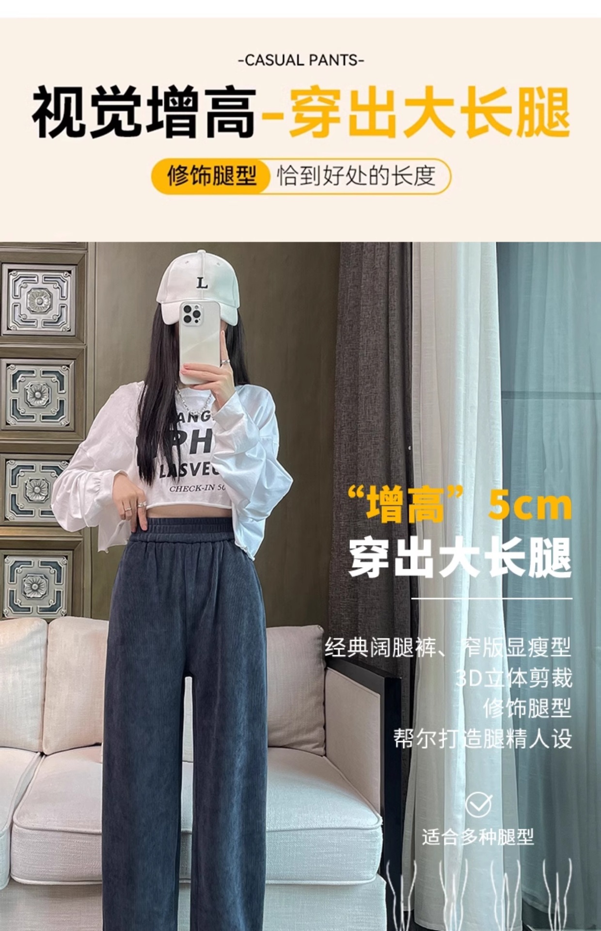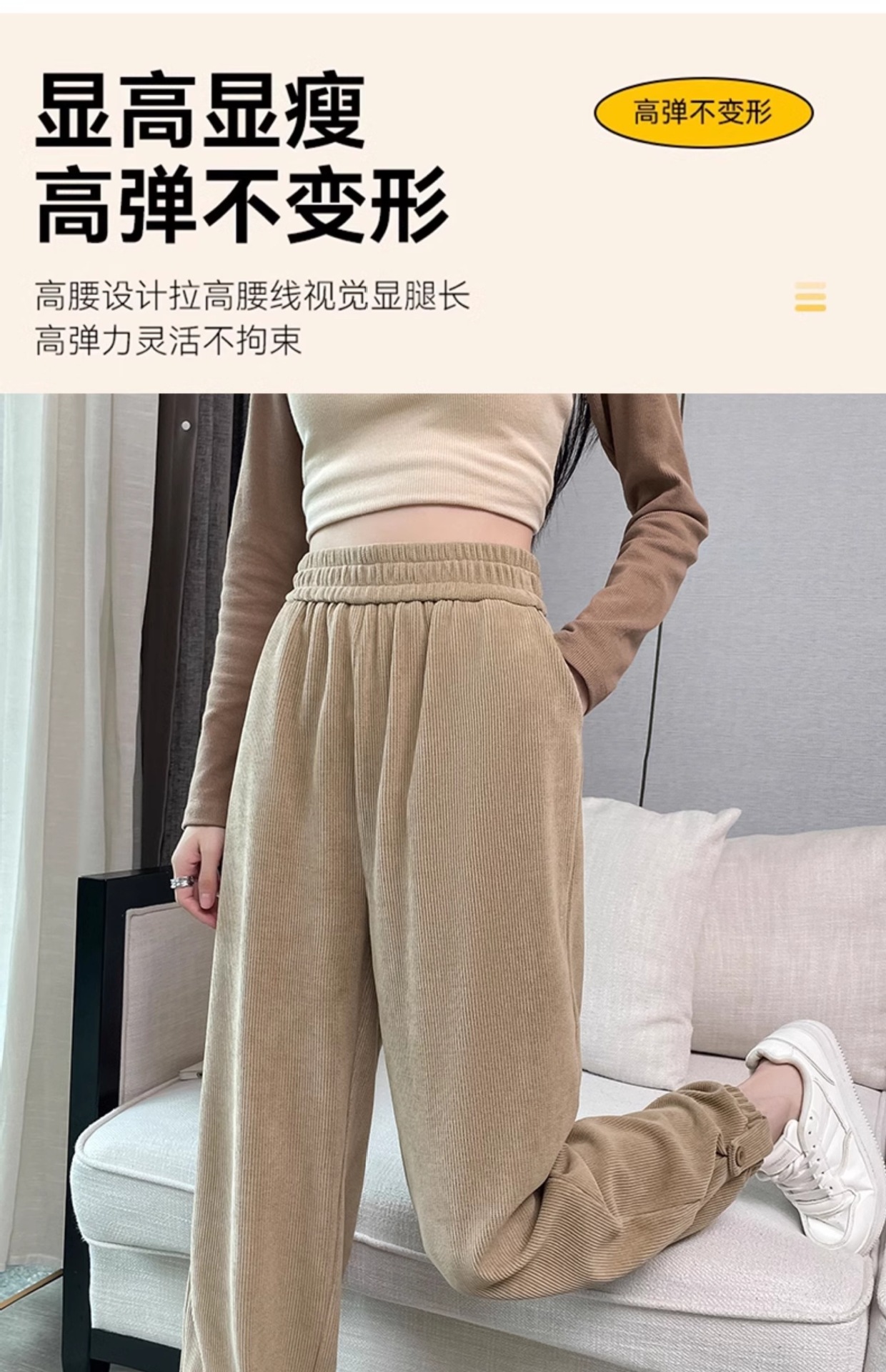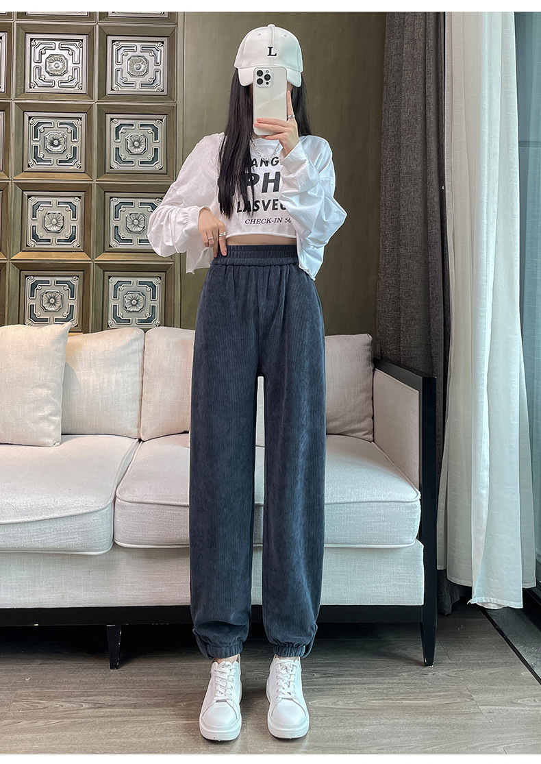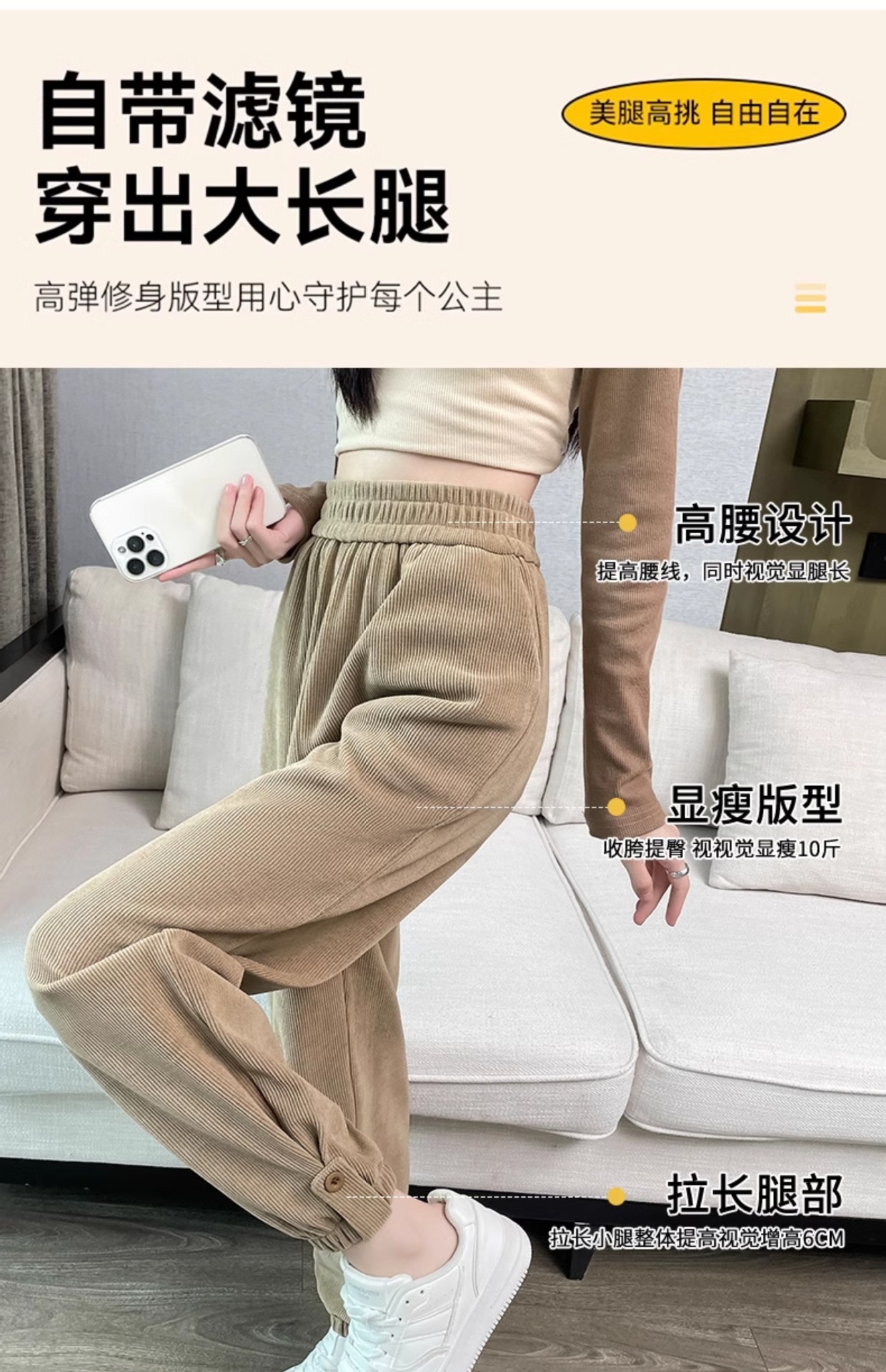 加绒加厚灯芯绒女裤秋冬小个子雪尼尔运动裤宽松束脚哈伦休闲卫裤