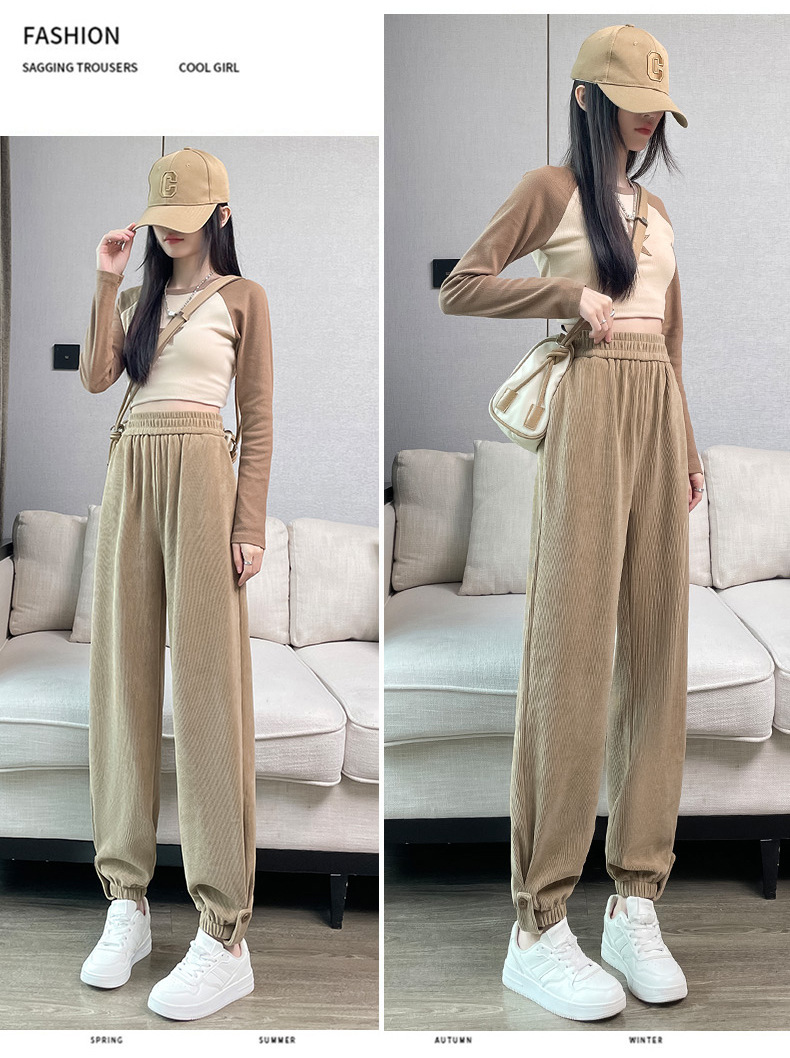 コーデュロイのゆるいハーレムズボンの女性秋冬の新型のハイウエストはやせています。