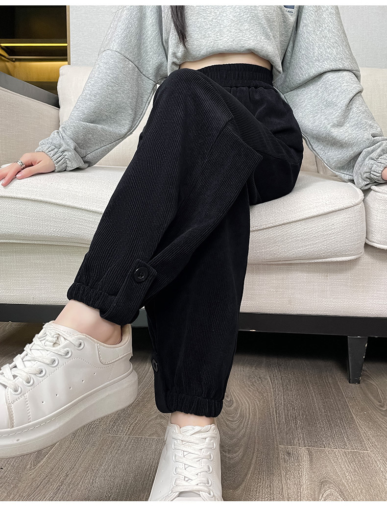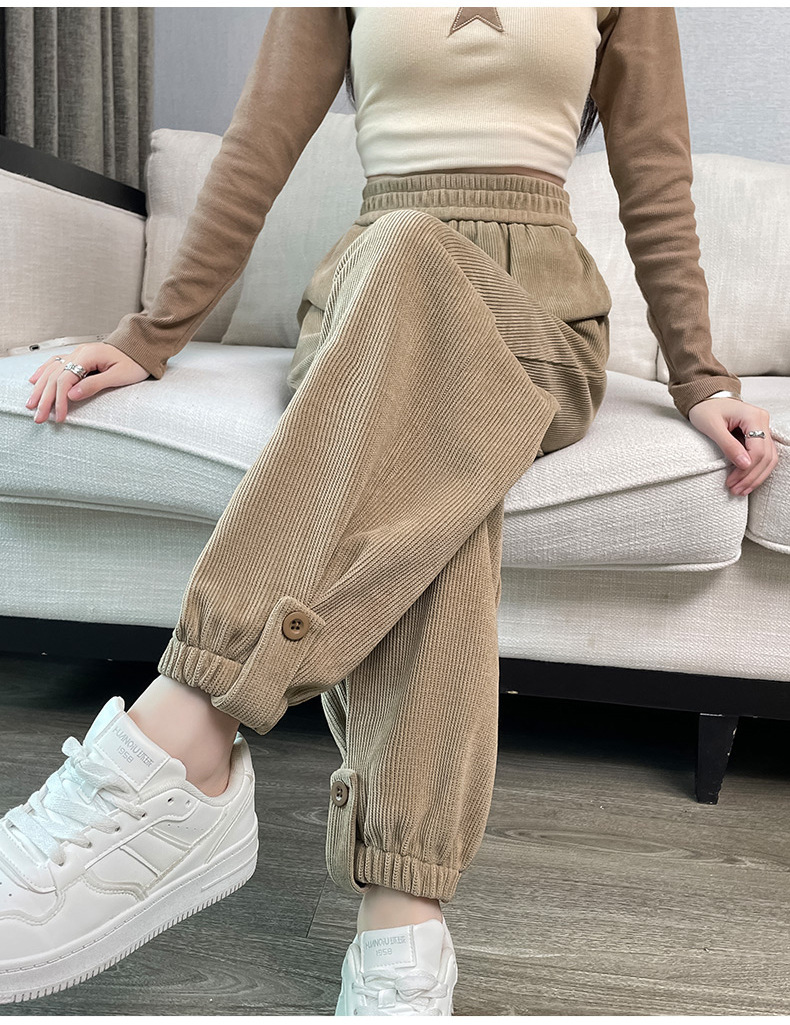 灯芯绒萝卜哈伦裤女加绒加厚韩版秋冬束脚裤休闲松紧腰卫裤九分裤