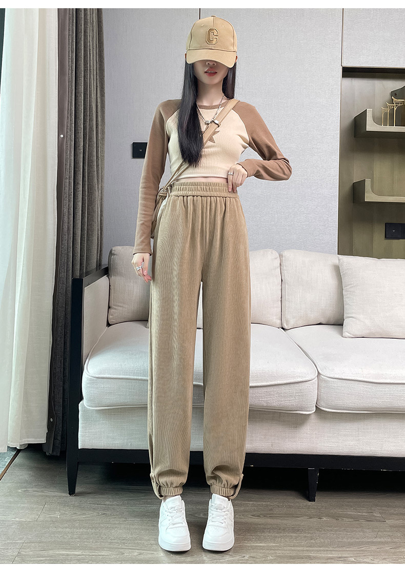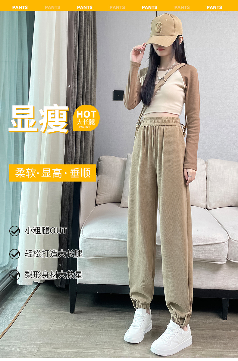 150矮小个子秋冬欧棉绒束脚灯笼裤女145加绒灯芯绒休闲九分运动裤