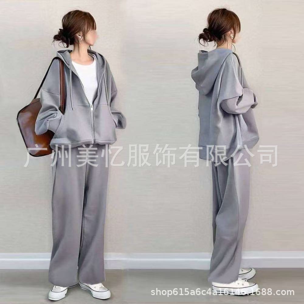 现货2025秋季热卖新款套装女连帽拉链卫衣阔腿裤休闲两件套