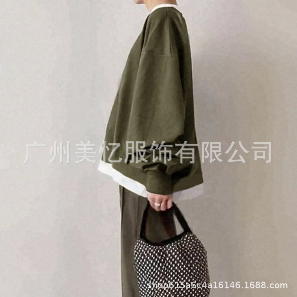 良い生地の既製服、売れ筋ロングワンピース、2025年春秋売れ筋フード付きパッチワークフリルロングスウェットワンピース