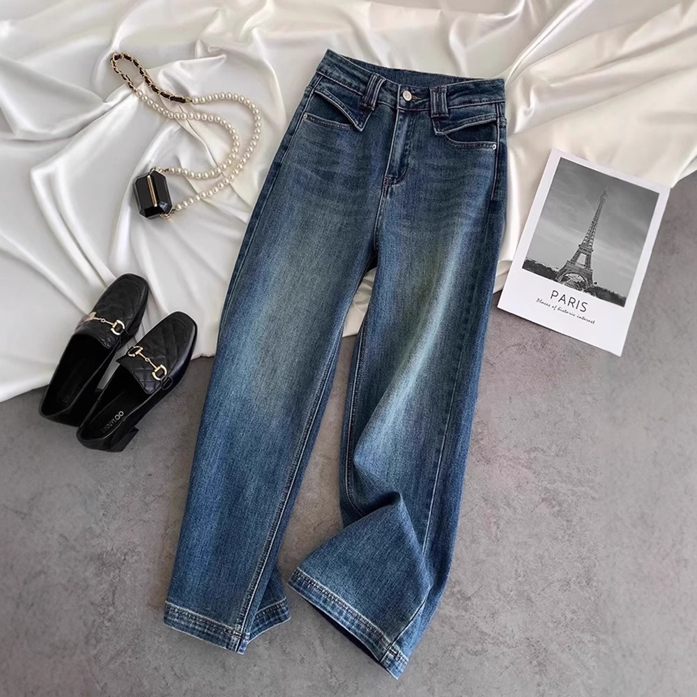 韓国版のデザイン感が高くて、腰がやせています。今年はストレートジーンズが流行しています。