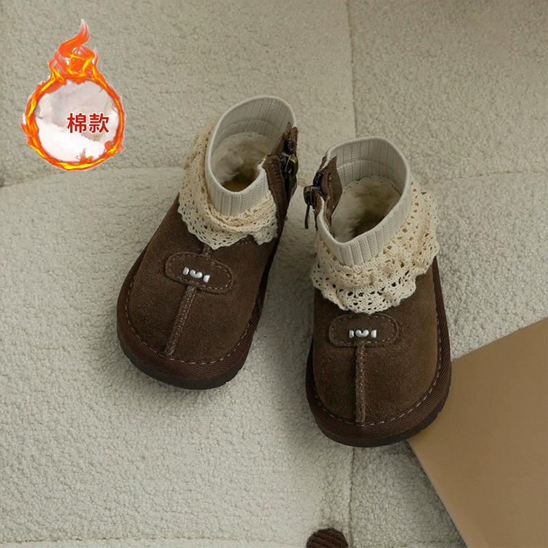 女童棉鞋波点靴2025冬季新款儿童加绒保暖毛毛鞋软底宝宝雪地靴