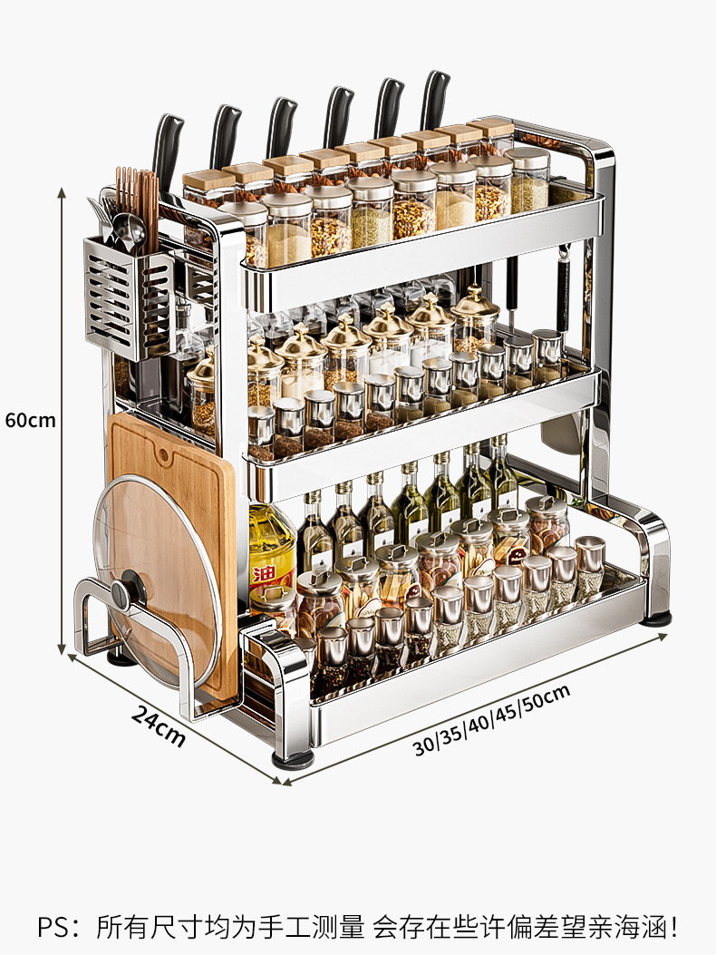 304ステンレス調味料棚小台所多機能棚台床置き多層狭い調味料収納棚