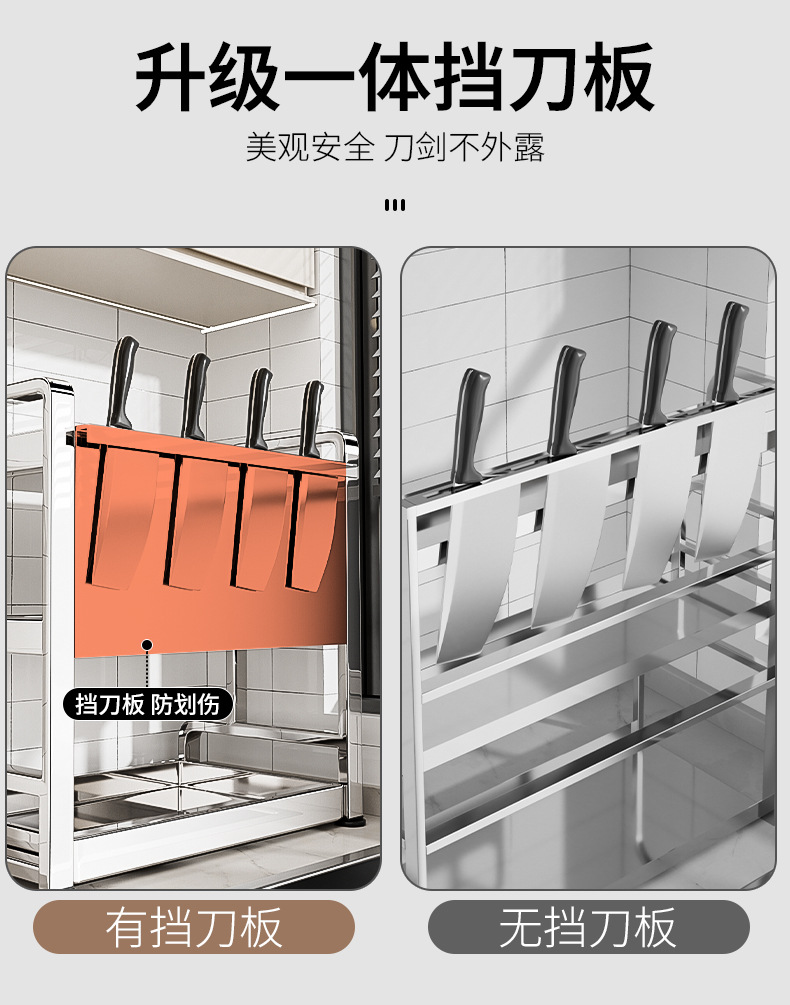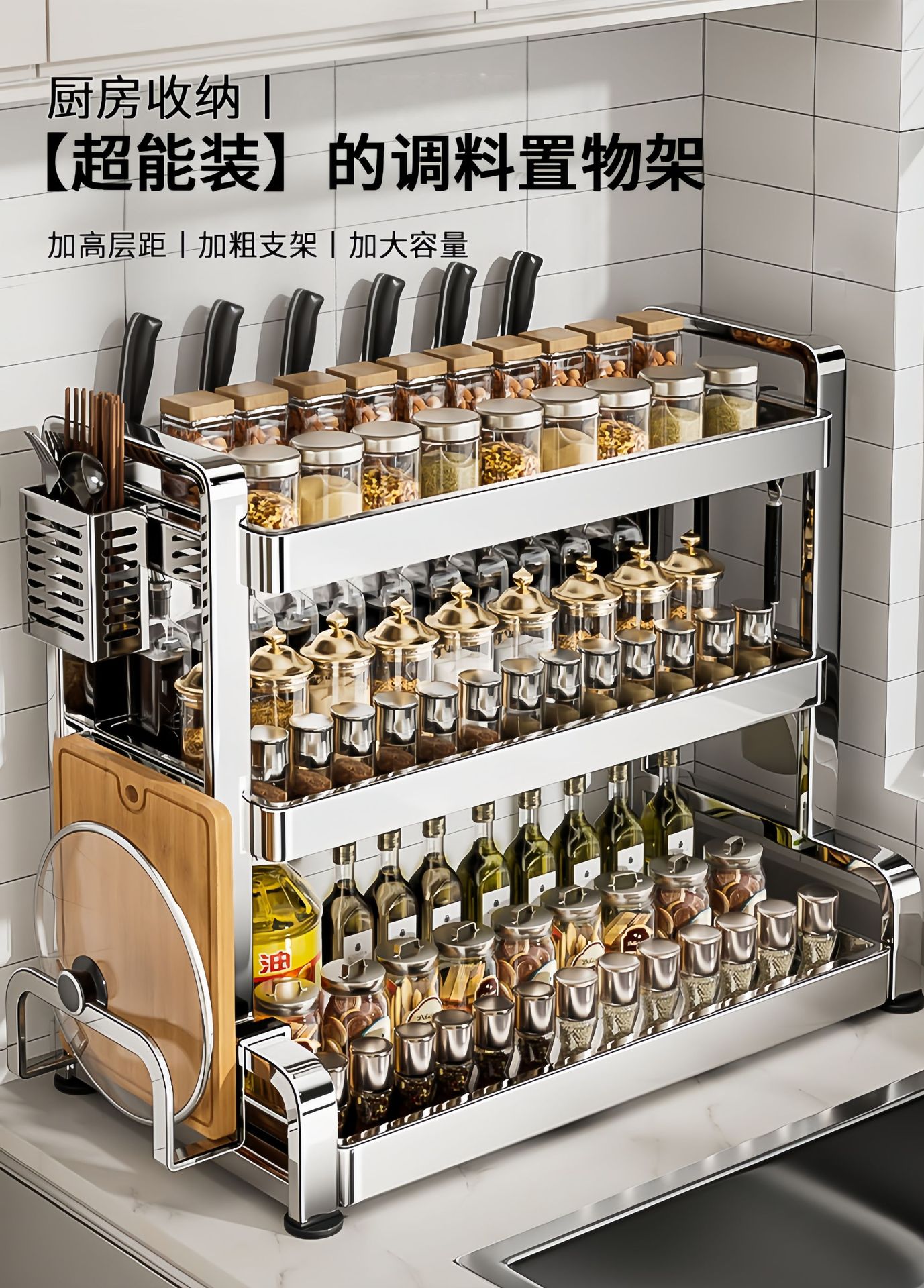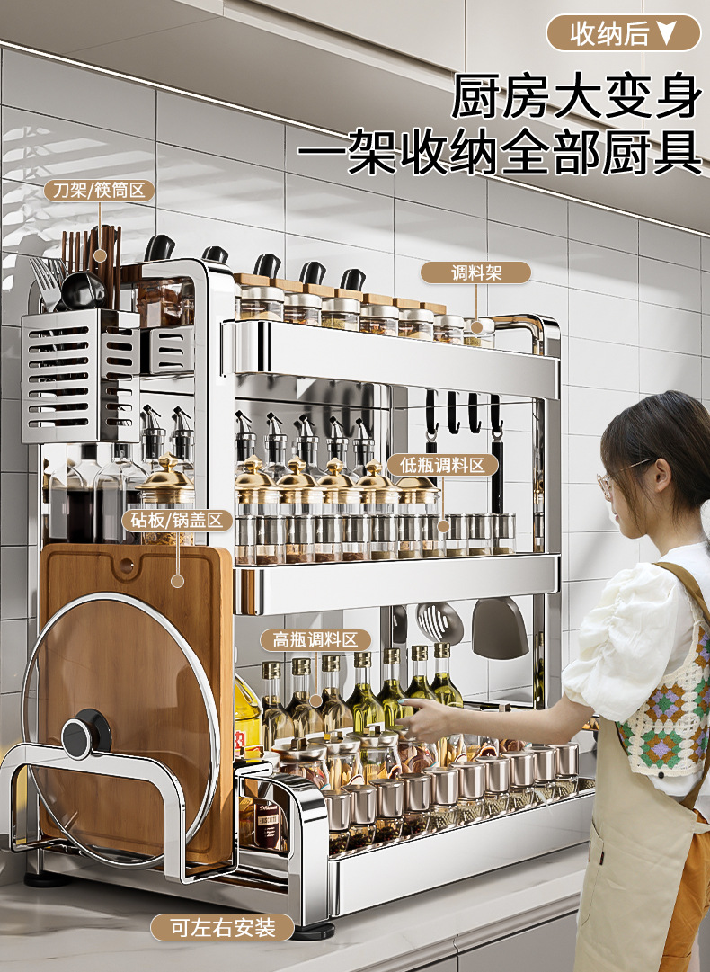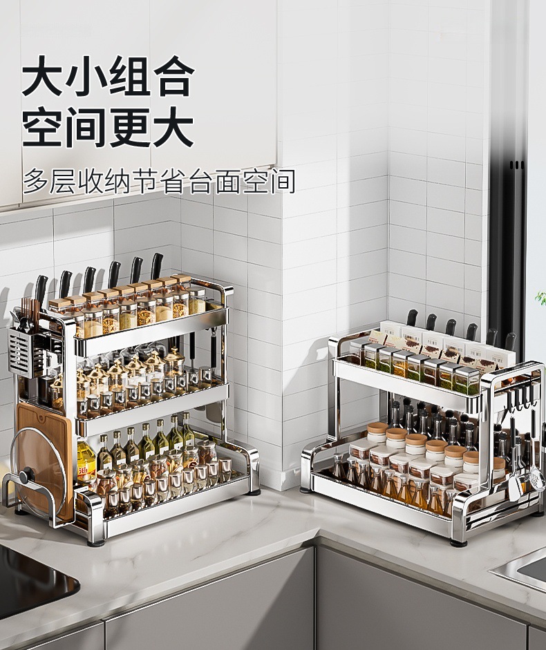 不锈钢厨房置物架台面放油壶调味品刀具筷子多层调料收纳架刀架