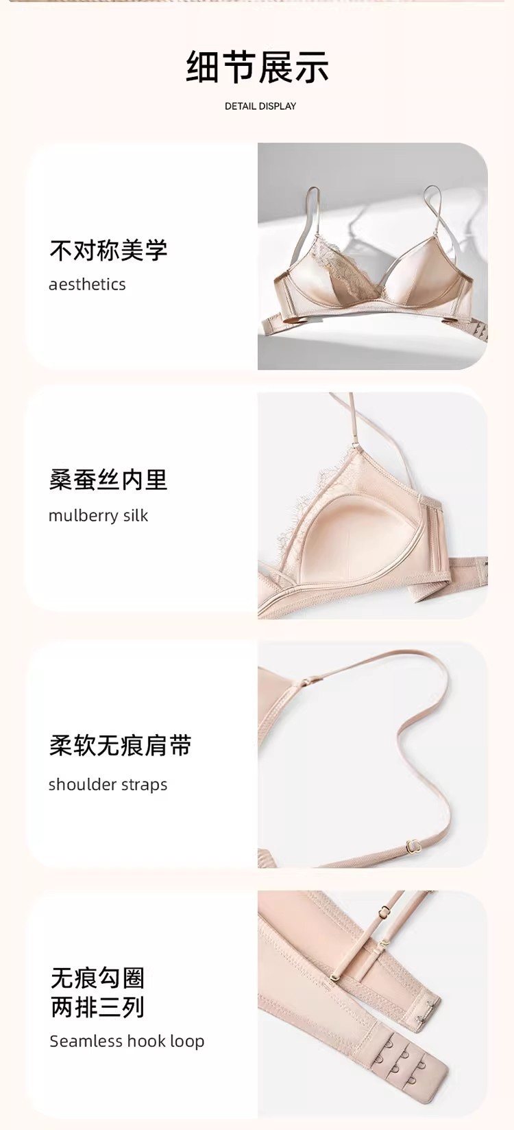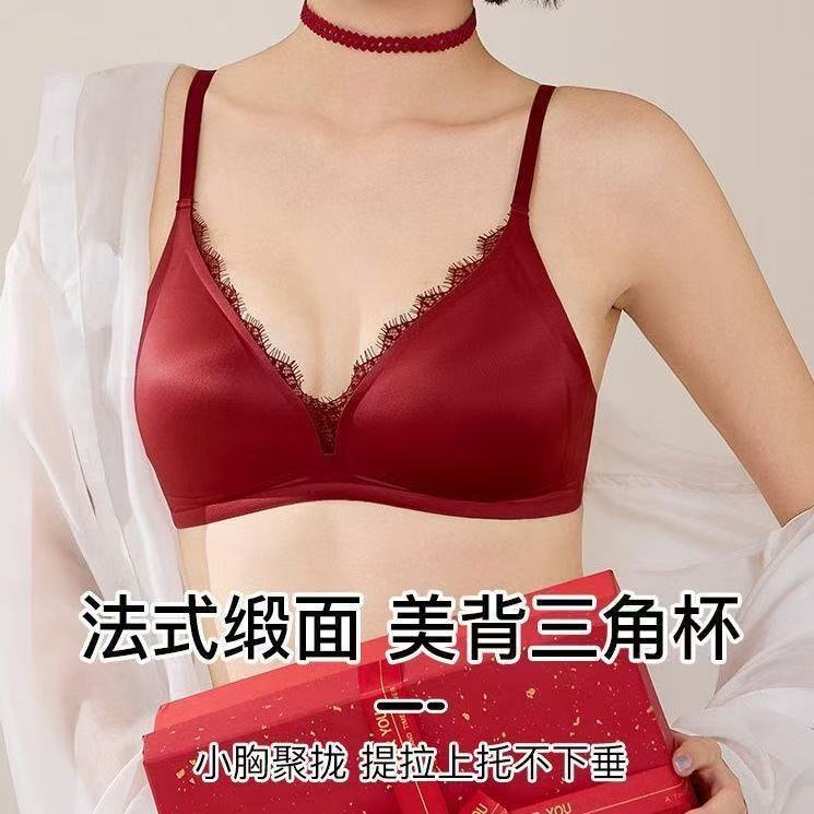 法式睫毛珠光缎面蕾丝显瘦百搭懒惰女士小胸三角杯内衣文胸