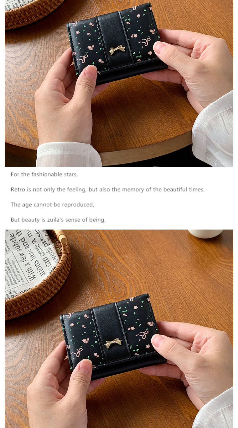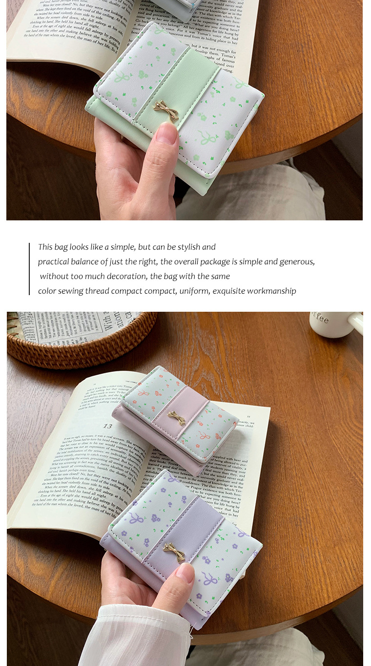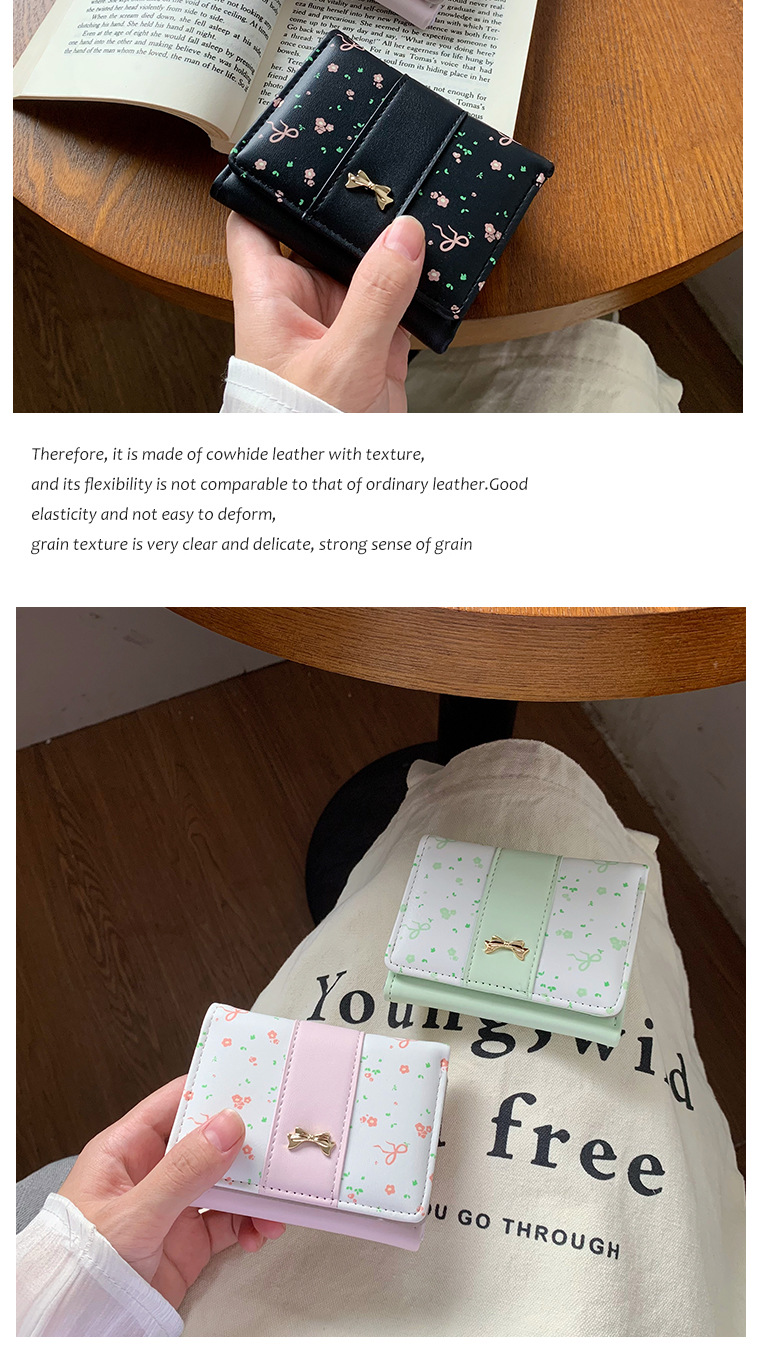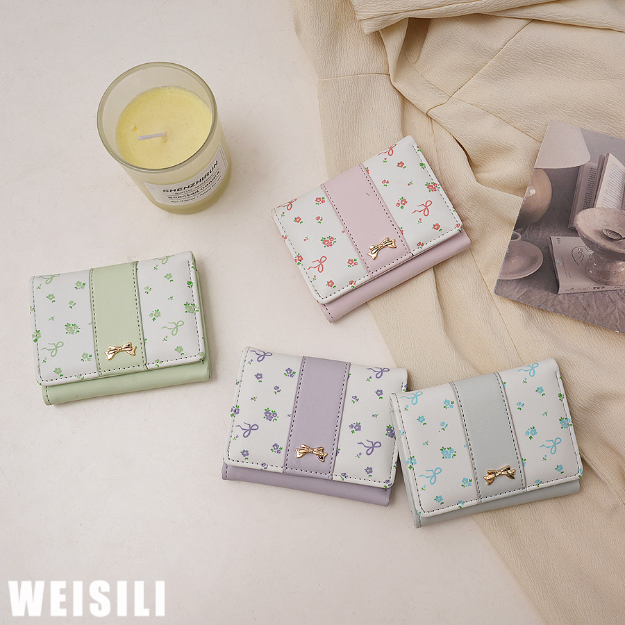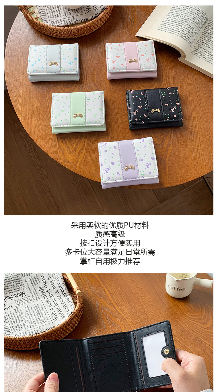 短款碎花蝴蝶结三折钱包女新款小清新多卡位小众学生零钱包卡包