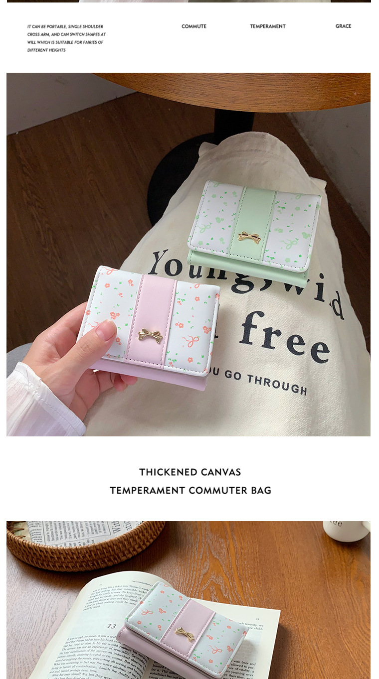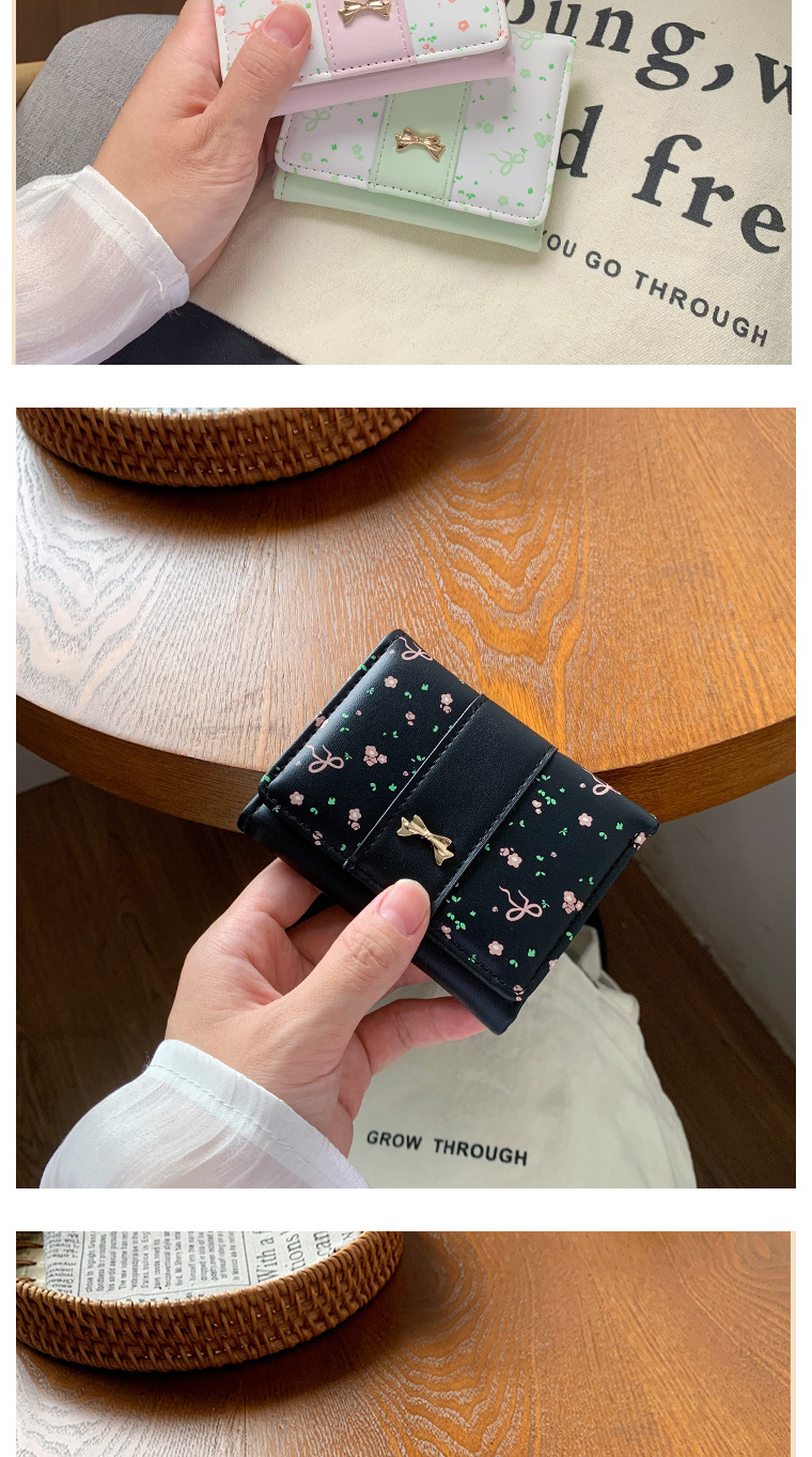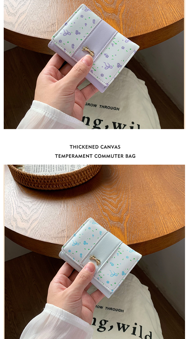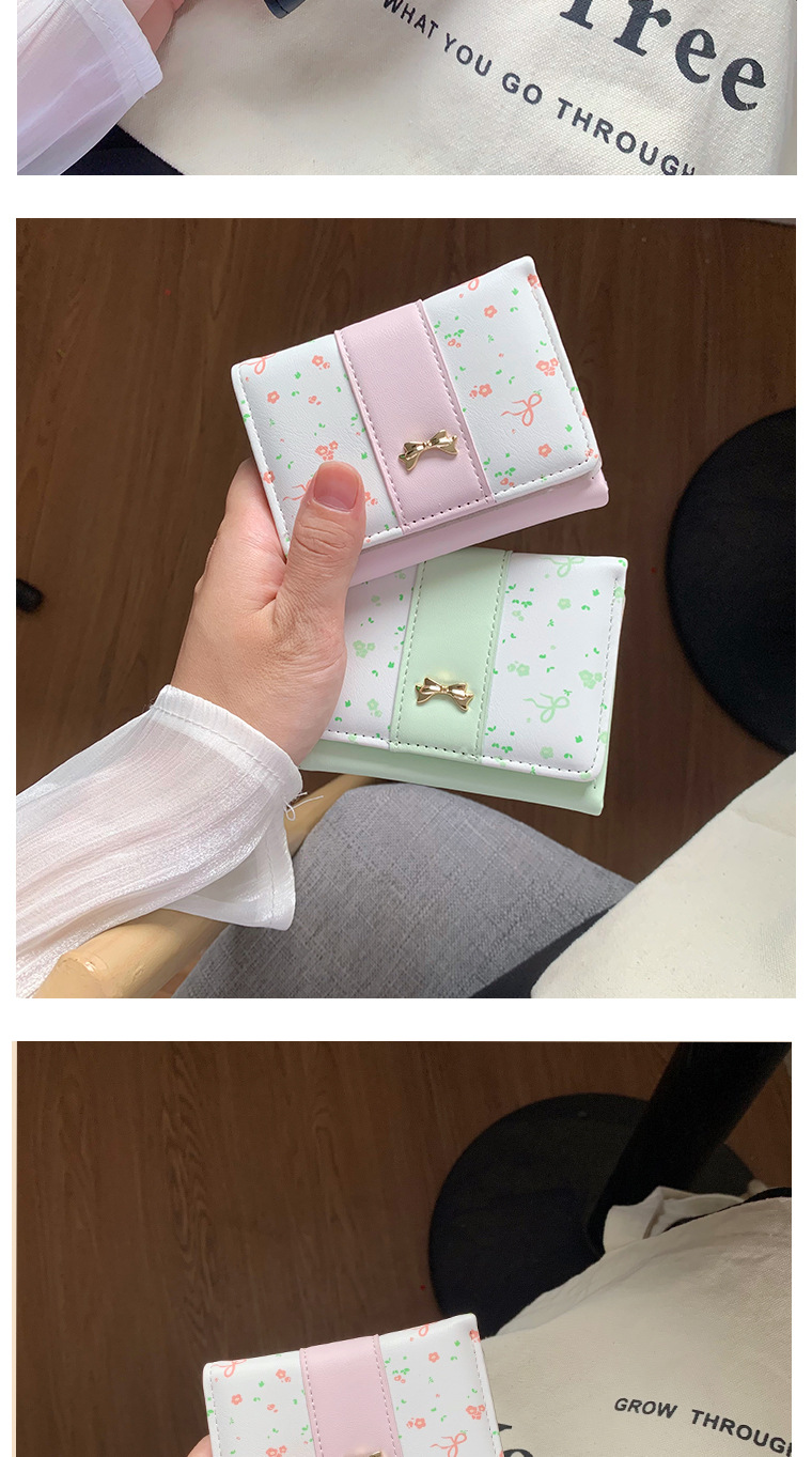 短款碎花蝴蝶结三折钱包女新款小清新多卡位小众学生零钱包卡包