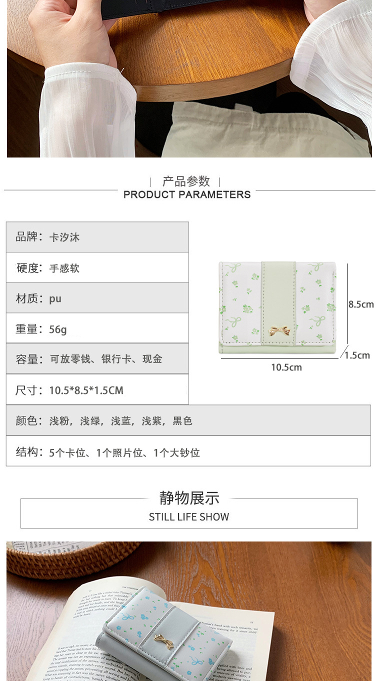 高颜值碎花蝴蝶结钱包女简约短款女士三折学生折叠搭扣卡包零钱夹