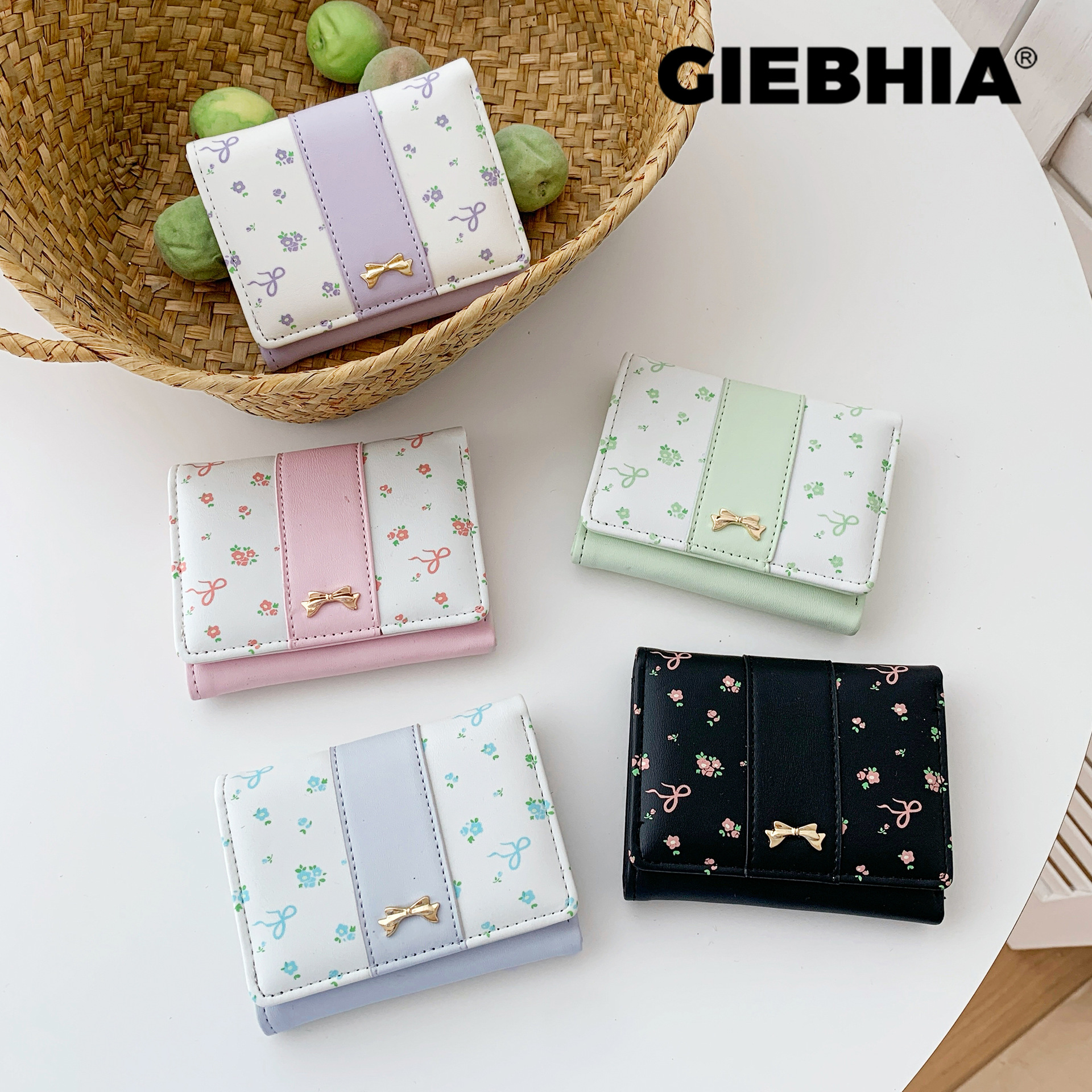 碎花蝴蝶结~钱包女简约短款女士钱包三折学生现货日式财布Purse