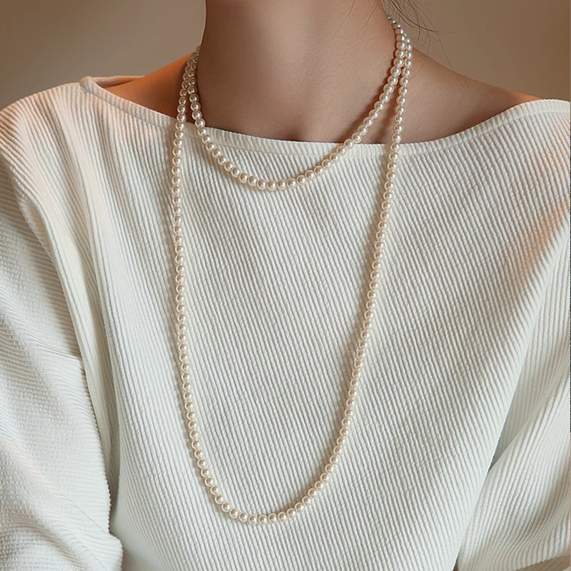 长款珍珠项链毛衣链轻奢高级感叠戴6mm珍珠项链颈链女款2025新款
