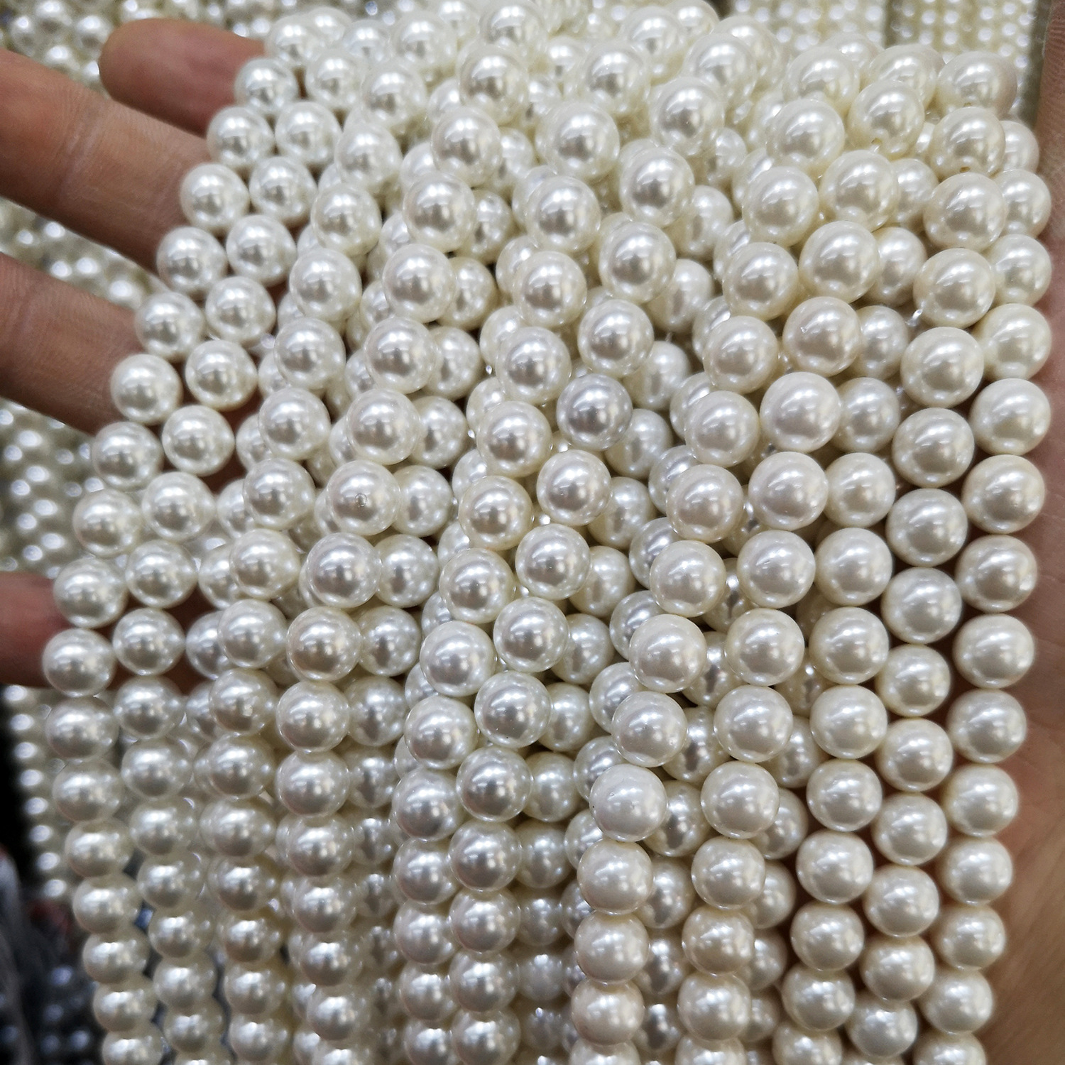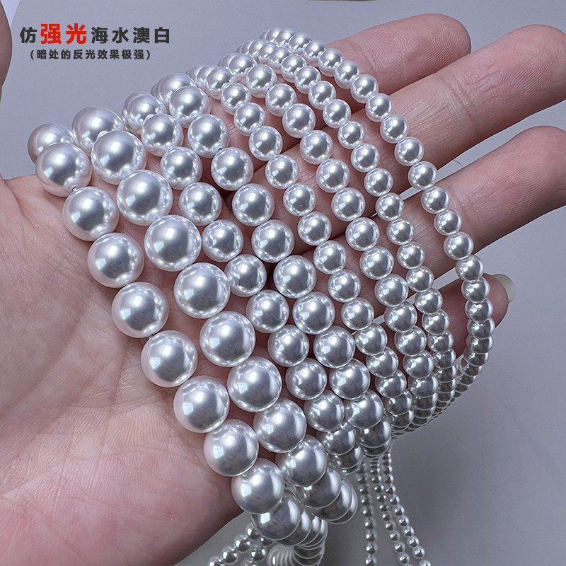 強い光ラウンドシェルパールストレートホール非脱落人工真珠 diy ジュエリーアクセサリーネックレス半完成品卸売