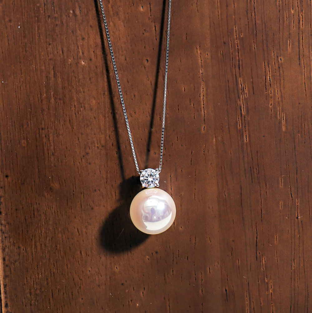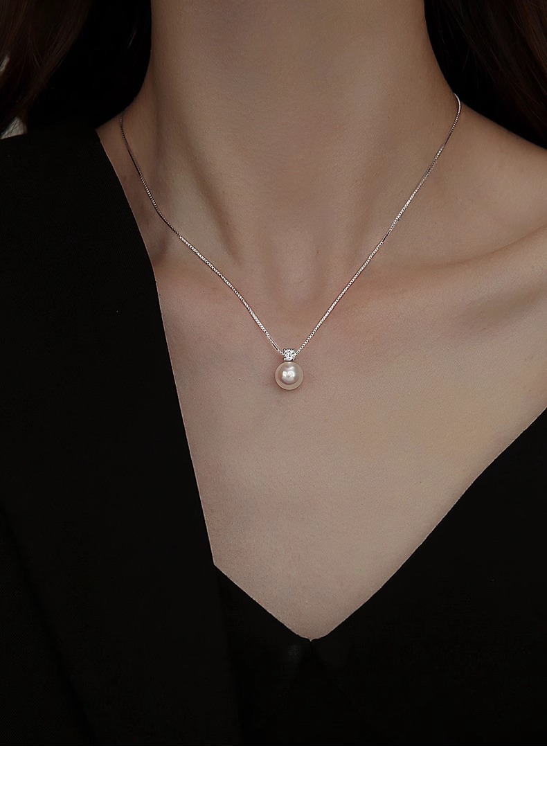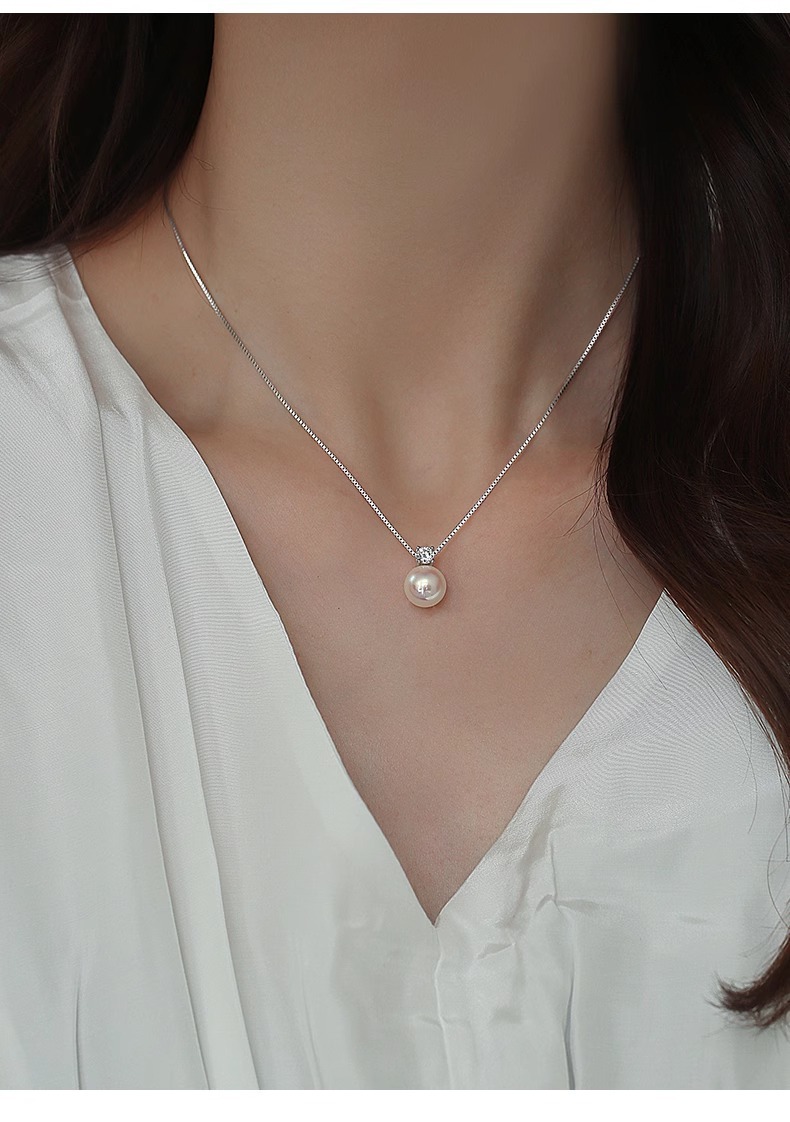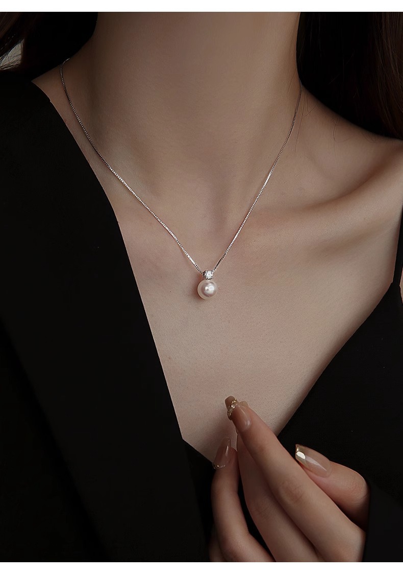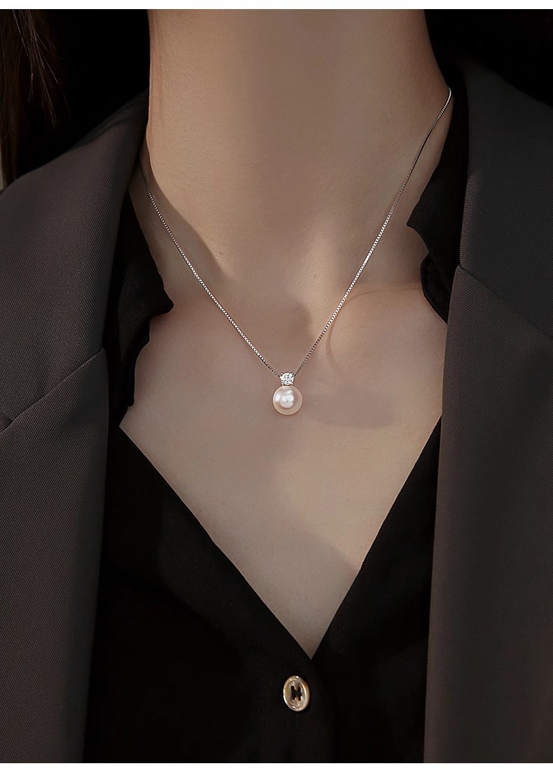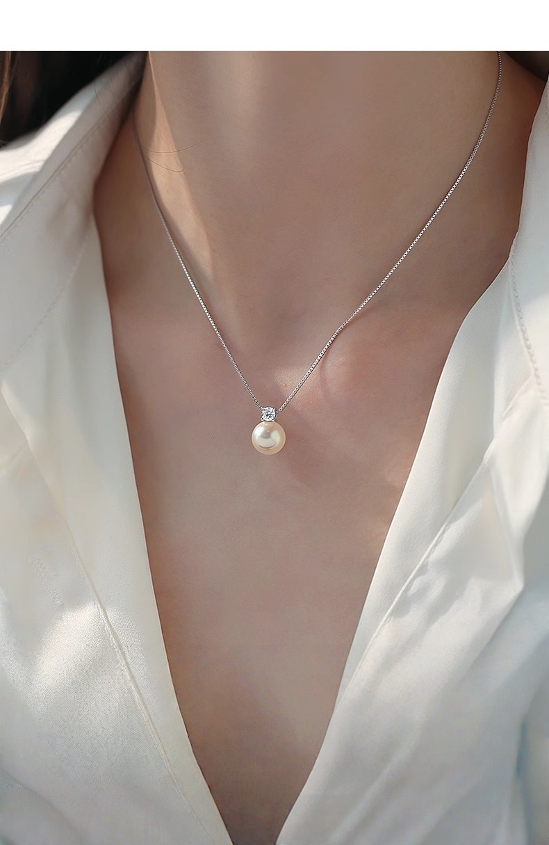 925纯银戴妃仿马贝珍珠项链女正圆单颗珍珠高级感锁骨链颈链饰品
