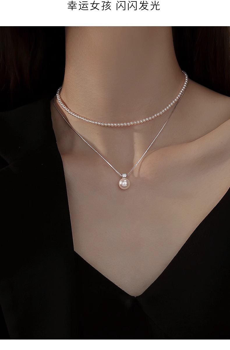 S925 スターリングシルバーパールネックレス女性の夏フレンチライト高級ファッションハイエンドデザイン 2025 新しいトレンディなネックレス