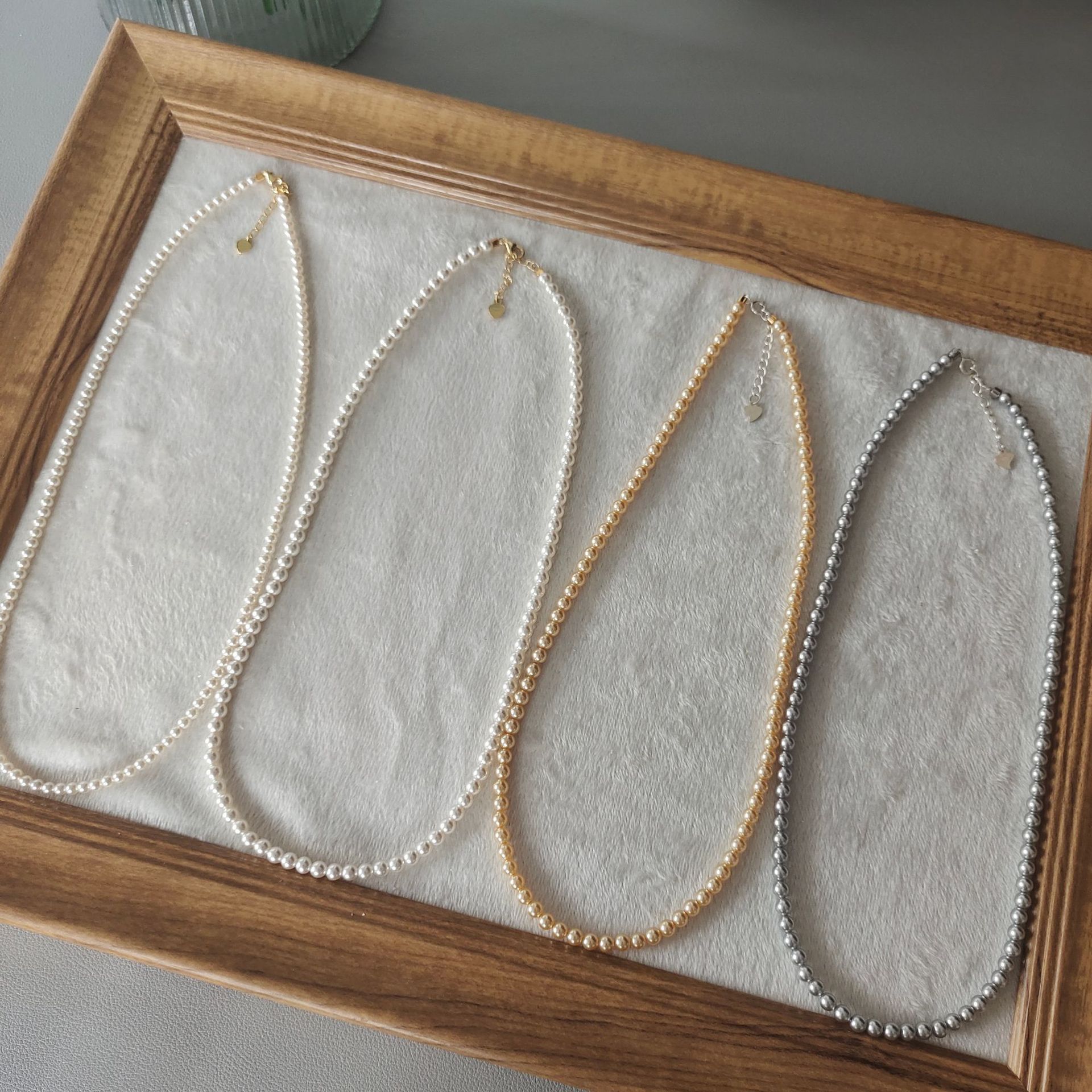 3mm細身の小米珠ネックレス レディース 模造シルバーパールネックレス 鎖骨チェーン 小さくて軽い高級感のある万能ショートクリスタルネックレス