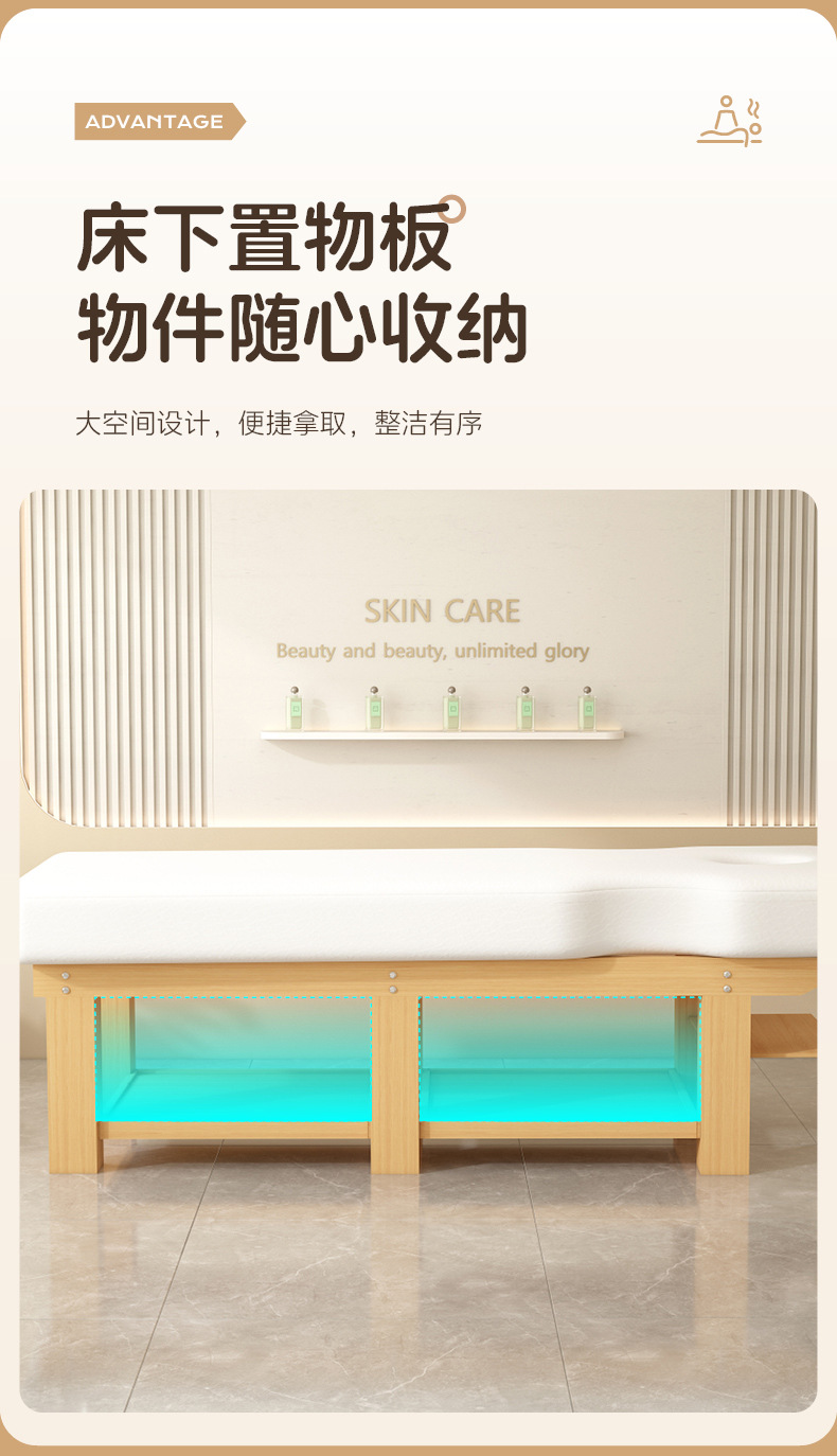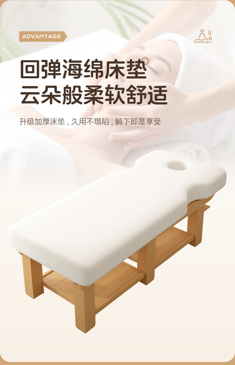 卸売り実木美容ベッド多目的理学療法マッサージベッドの下に戸棚付きの耳紋刺繍美まつげ灸マッサージベッド