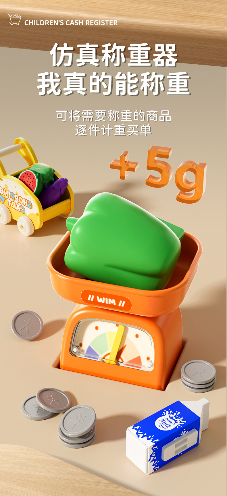 儿童过家家玩具超市收银机智能感应称重信真收银台过家家收纳礼物