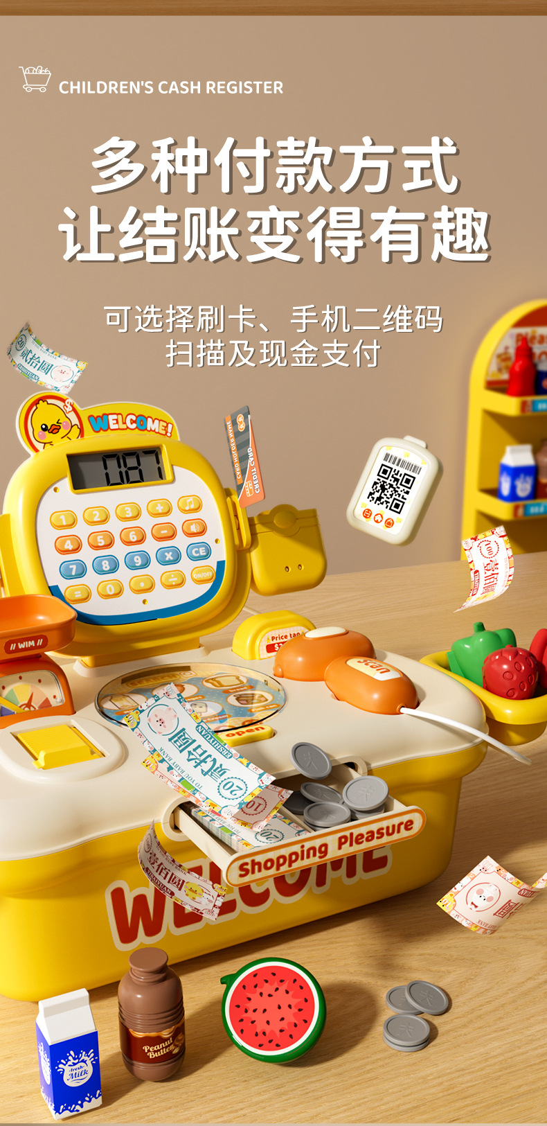 儿童玩具收银员玩具超市仿真多功能益智女孩过家家收银台生日礼物