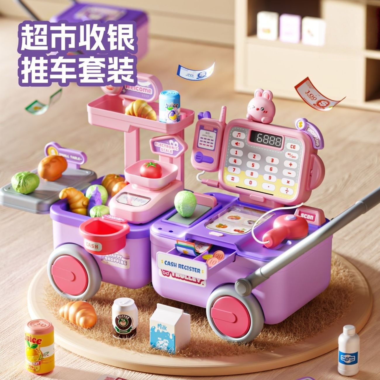 跨境儿童仿真超市购物收银台套装扫描刷卡计算收银推车过家家玩具