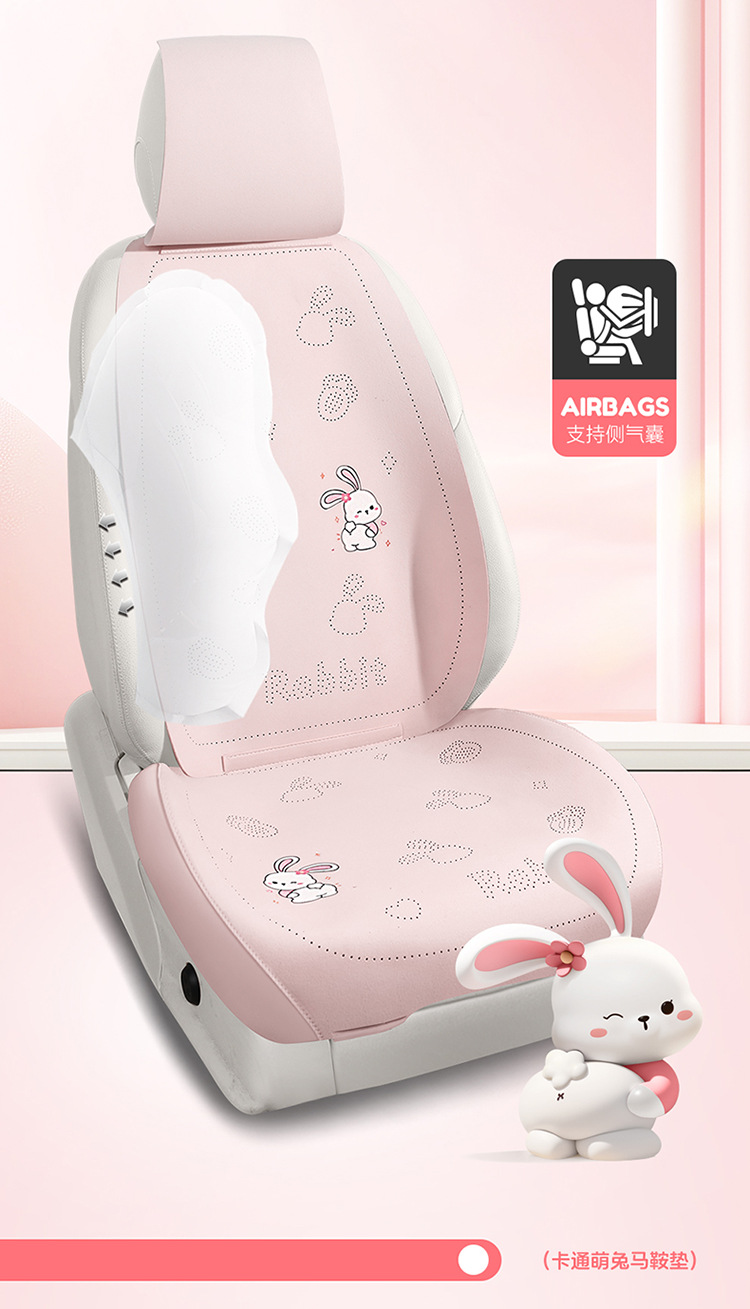 翻毛皮打孔透气新款卡通可爱汽车坐垫四季通用马鞍垫一体长垫