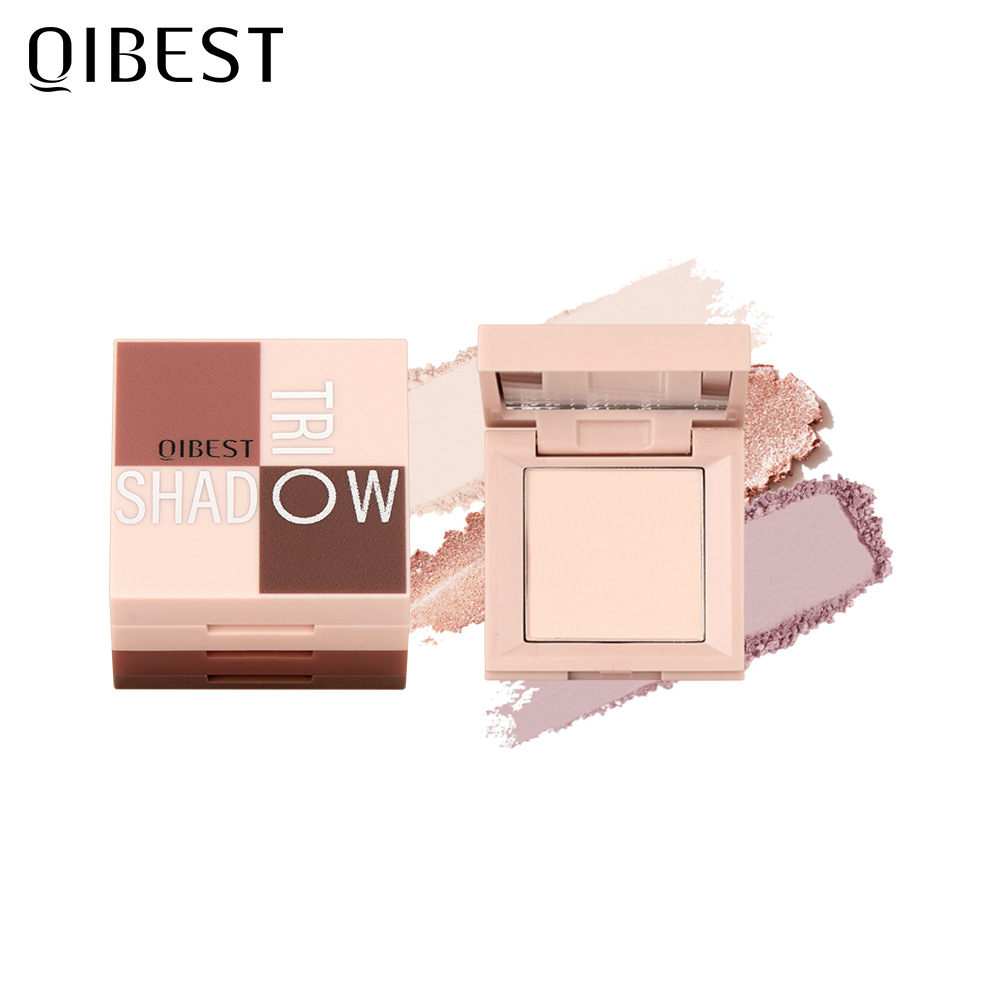 QIBEST3合1迷你眼影盒立体哑光珠光偏光自然初学者不飞粉眼影盘