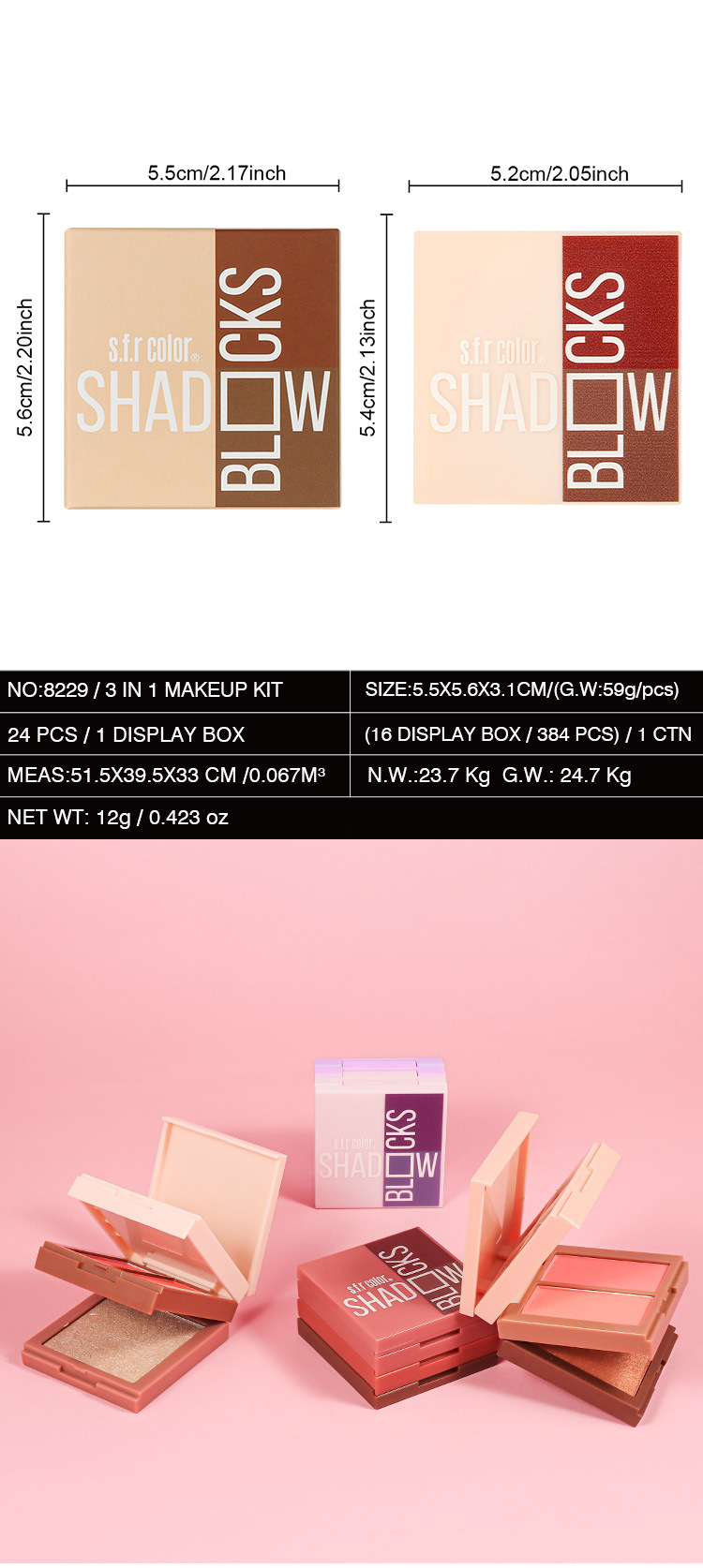 s.f.r眼影盘一盘多用哑光亮片细闪眼影腮红修容盘跨境彩妆批发