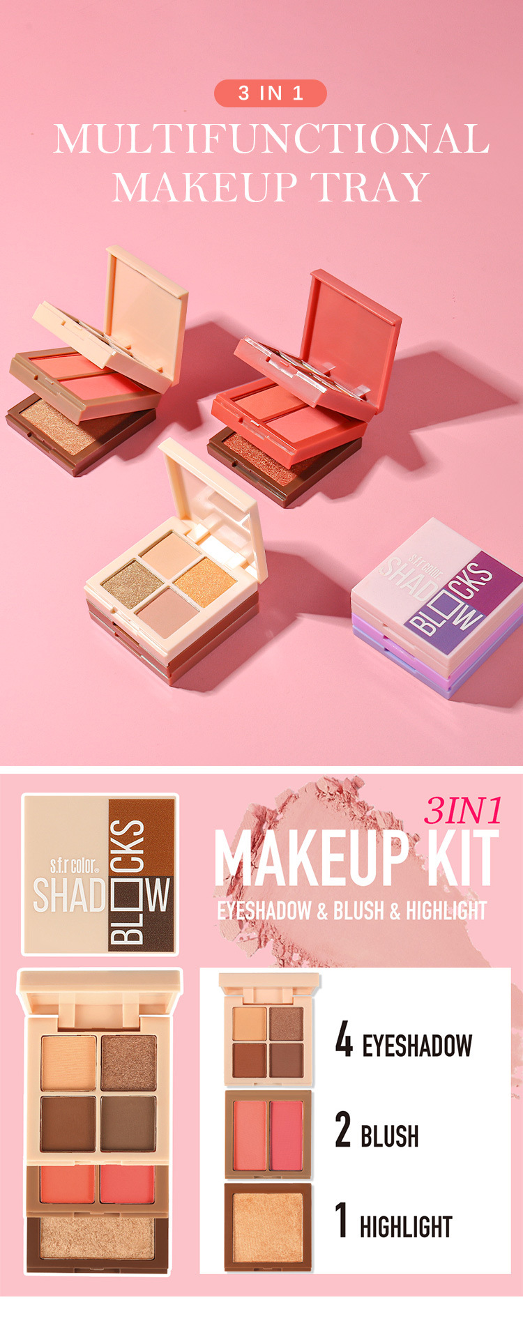 8337三层彩妆盘眼影加腮红加高光加粉饼出口外贸【ANYLADY】新款