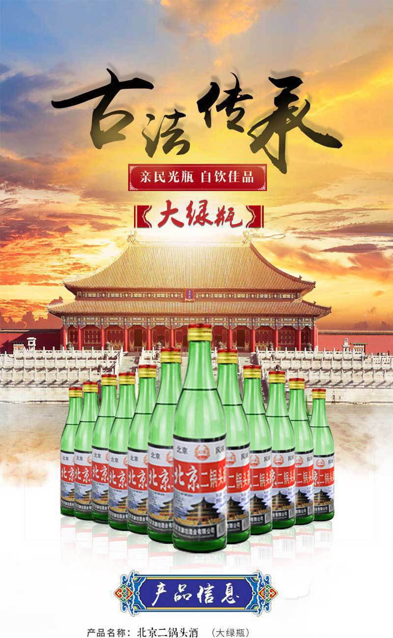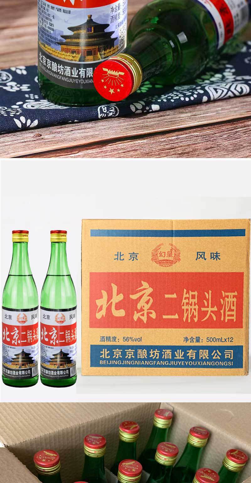 北京二锅头56度大二清香型高度白酒500粮酒整箱12瓶绿瓶批发