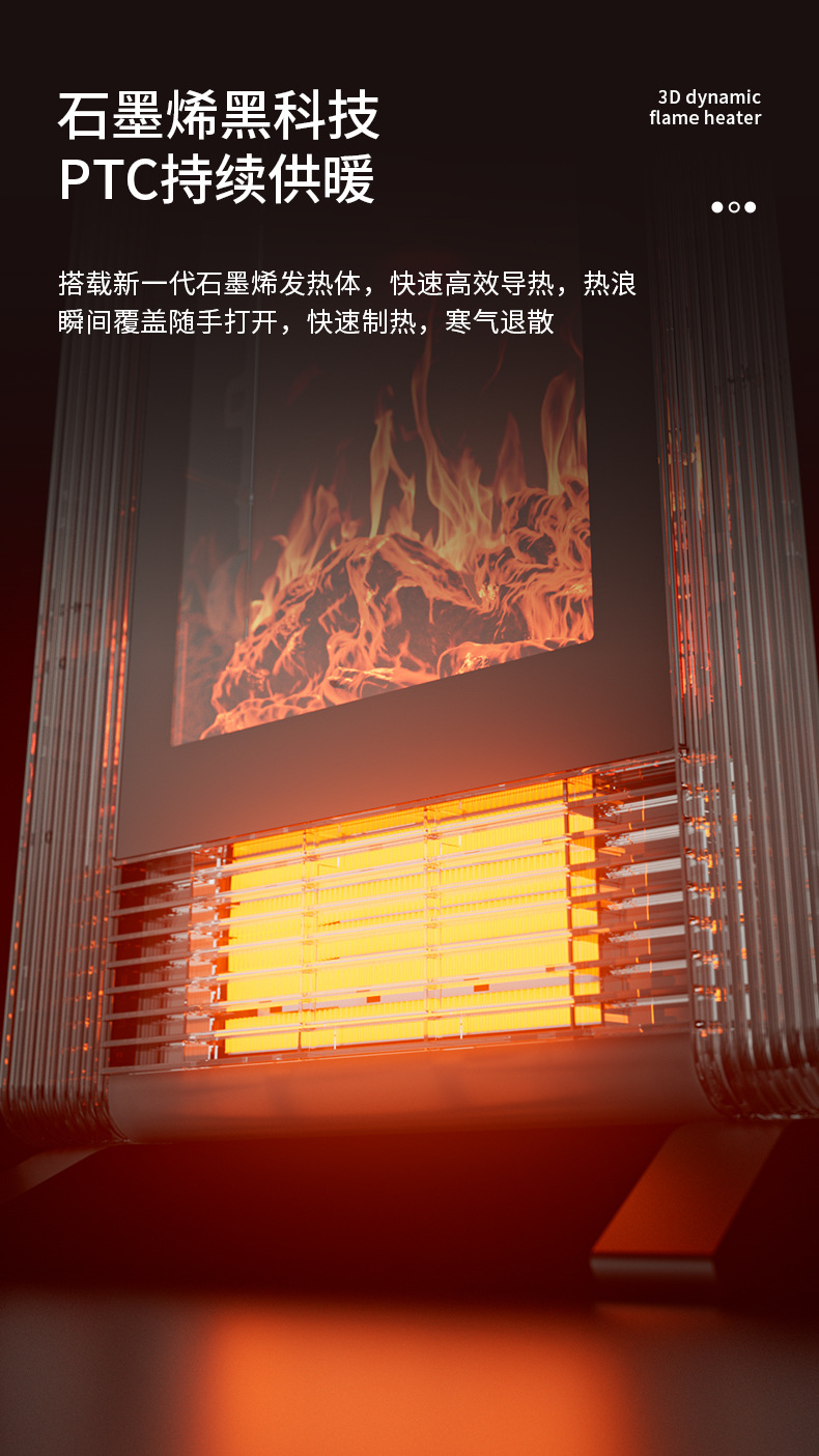 3D碳灰石墨烯取暖器火焰雾化壁炉家用节能省电语音加湿暖风机智能