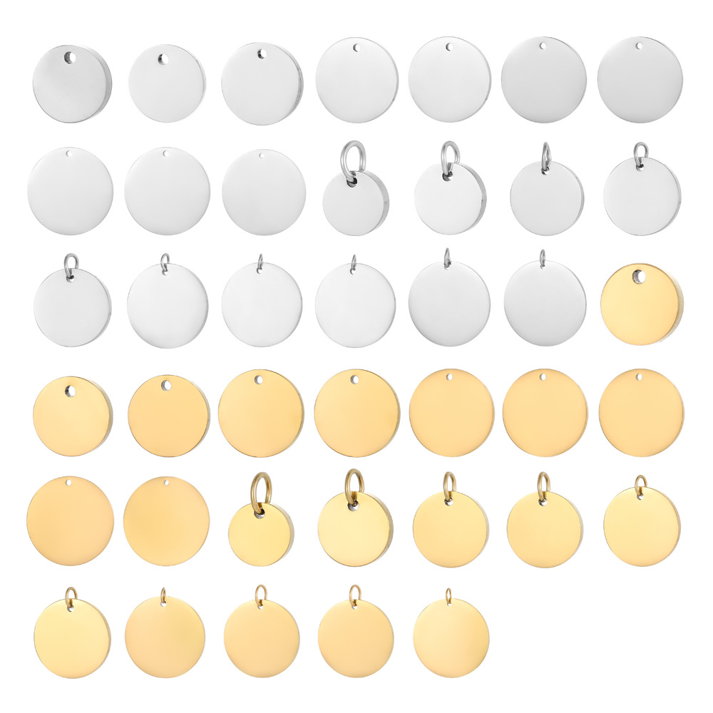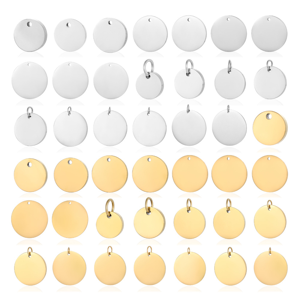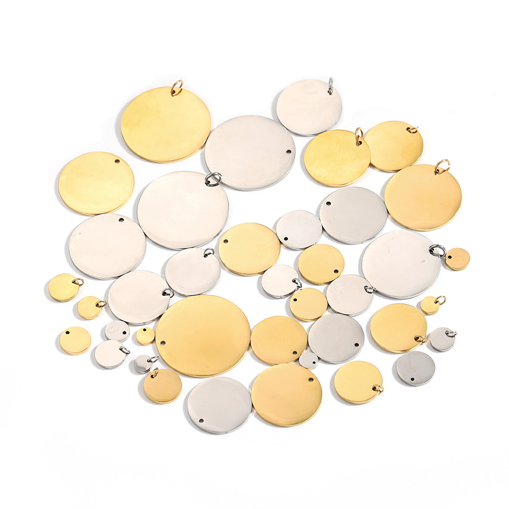 不锈钢抛光带挂圈圆片吊坠8-30mm多规格光面圆片吊坠DIY可刻字