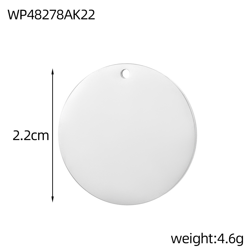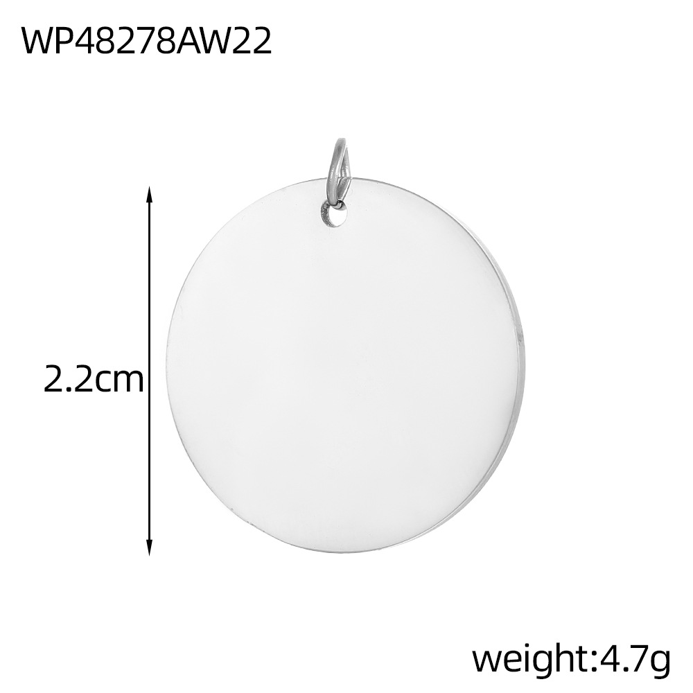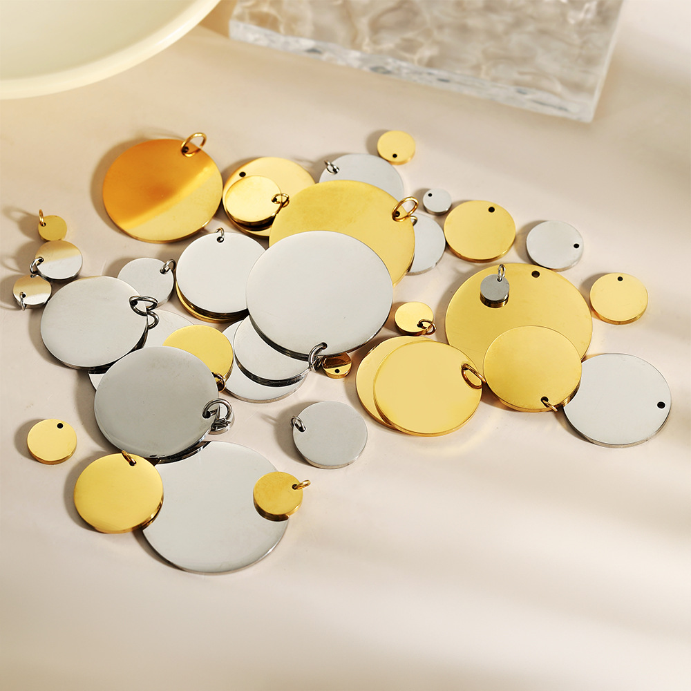 不锈钢镜面精抛光圆牌吊坠圆形圆片吊坠饰品配件真空电镀配件批发