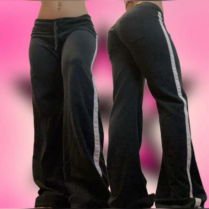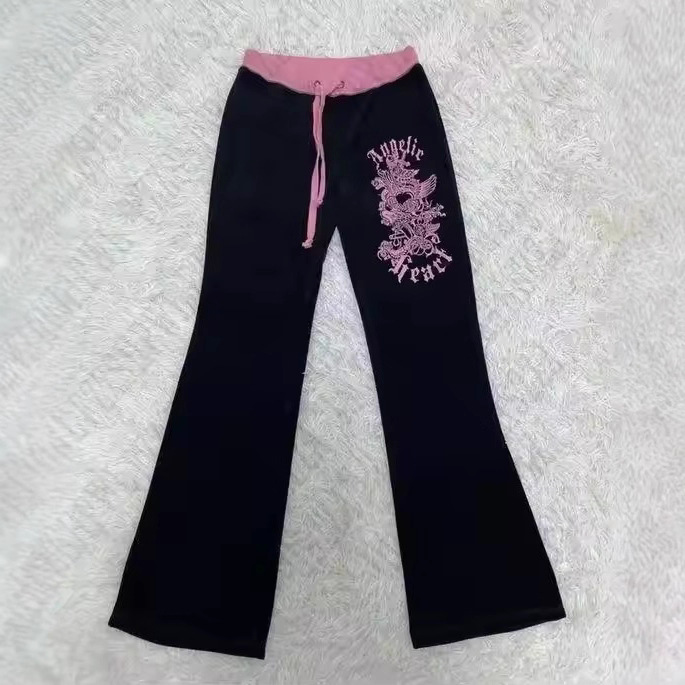 新款低腰系带拼色印花长裤美式时尚辣妹个性潮流舒适百搭休闲裤
