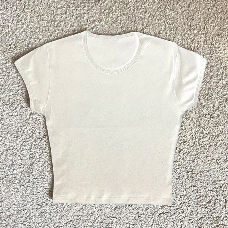 2025 夏の新通勤ソリッドカラーマルチカラーラウンドネックシンプルなスリムフィットプリント Tシャツトップ女性のための
