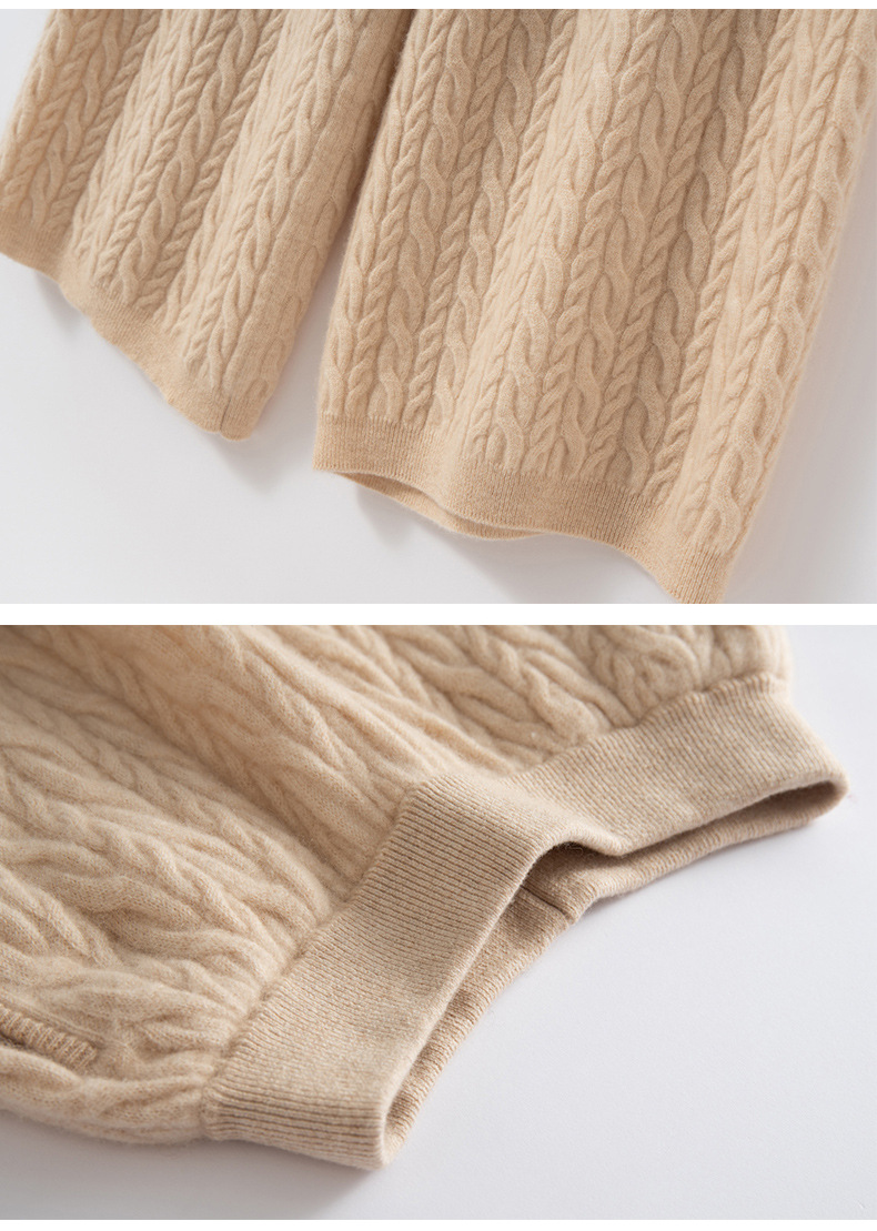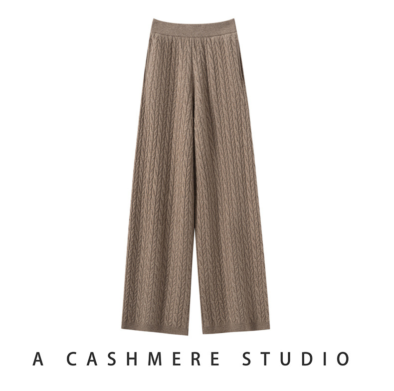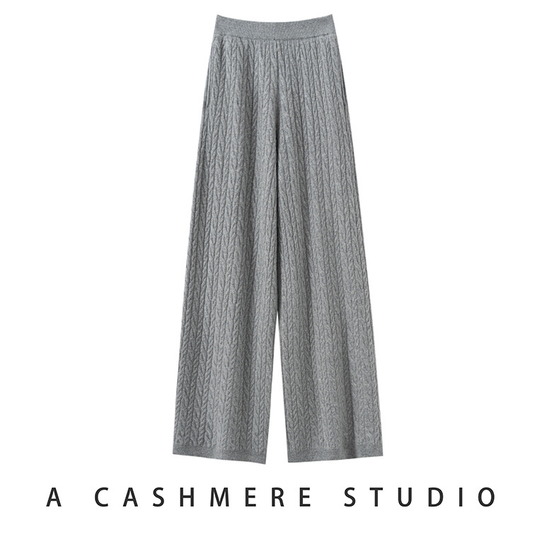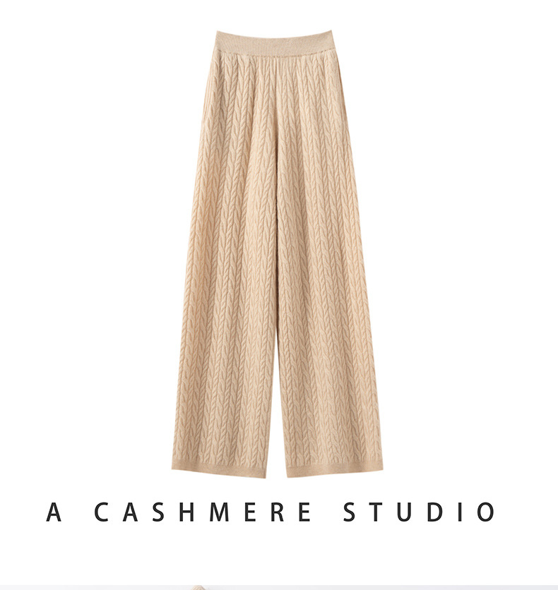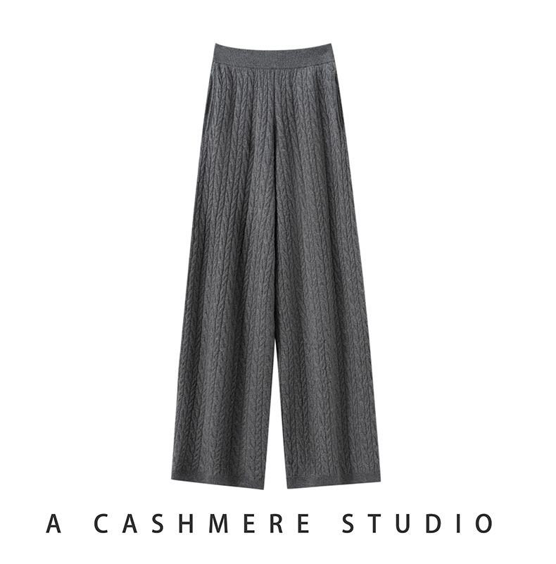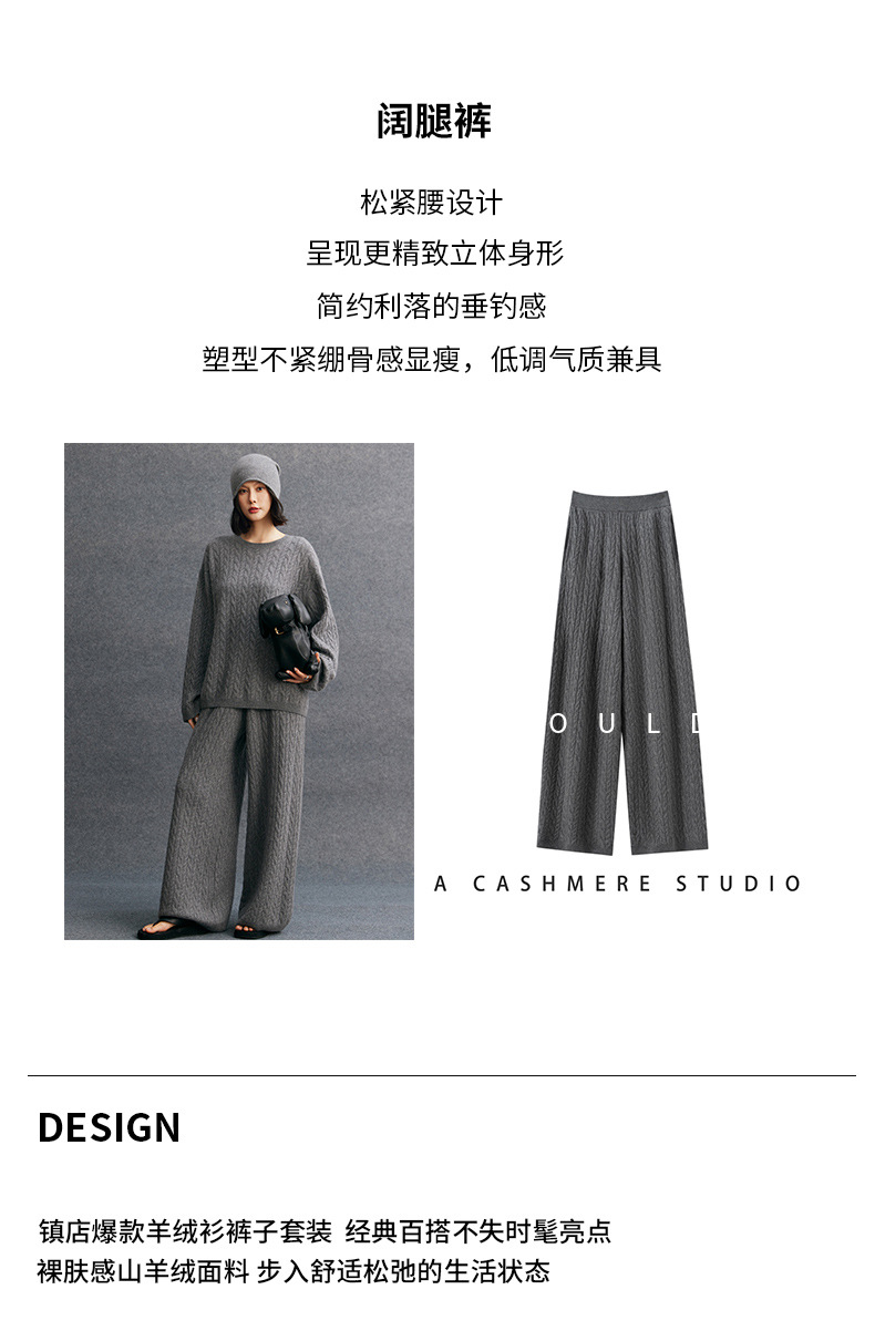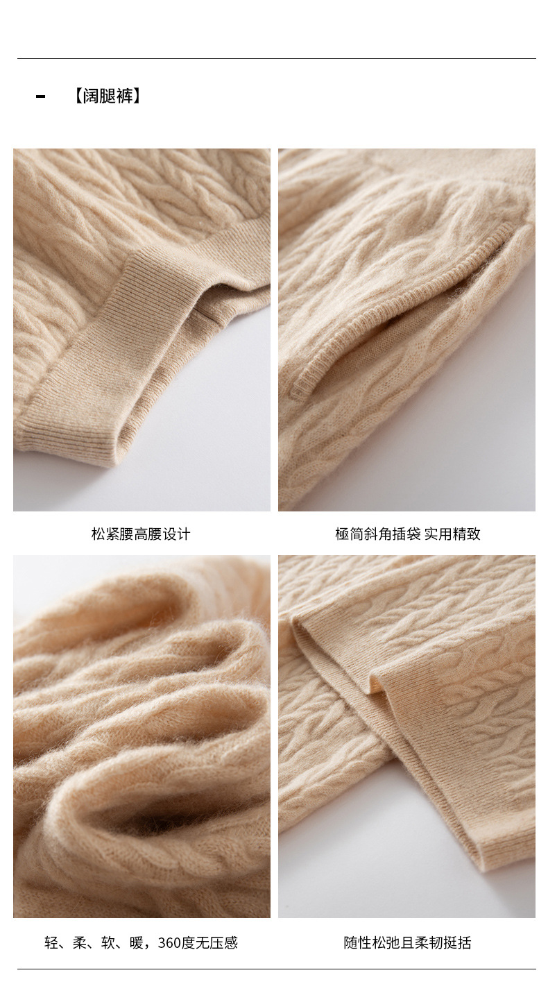 山羊绒女士绞花纯色宽松简约百搭阔腿裤秋冬新款复古老钱风休闲裤