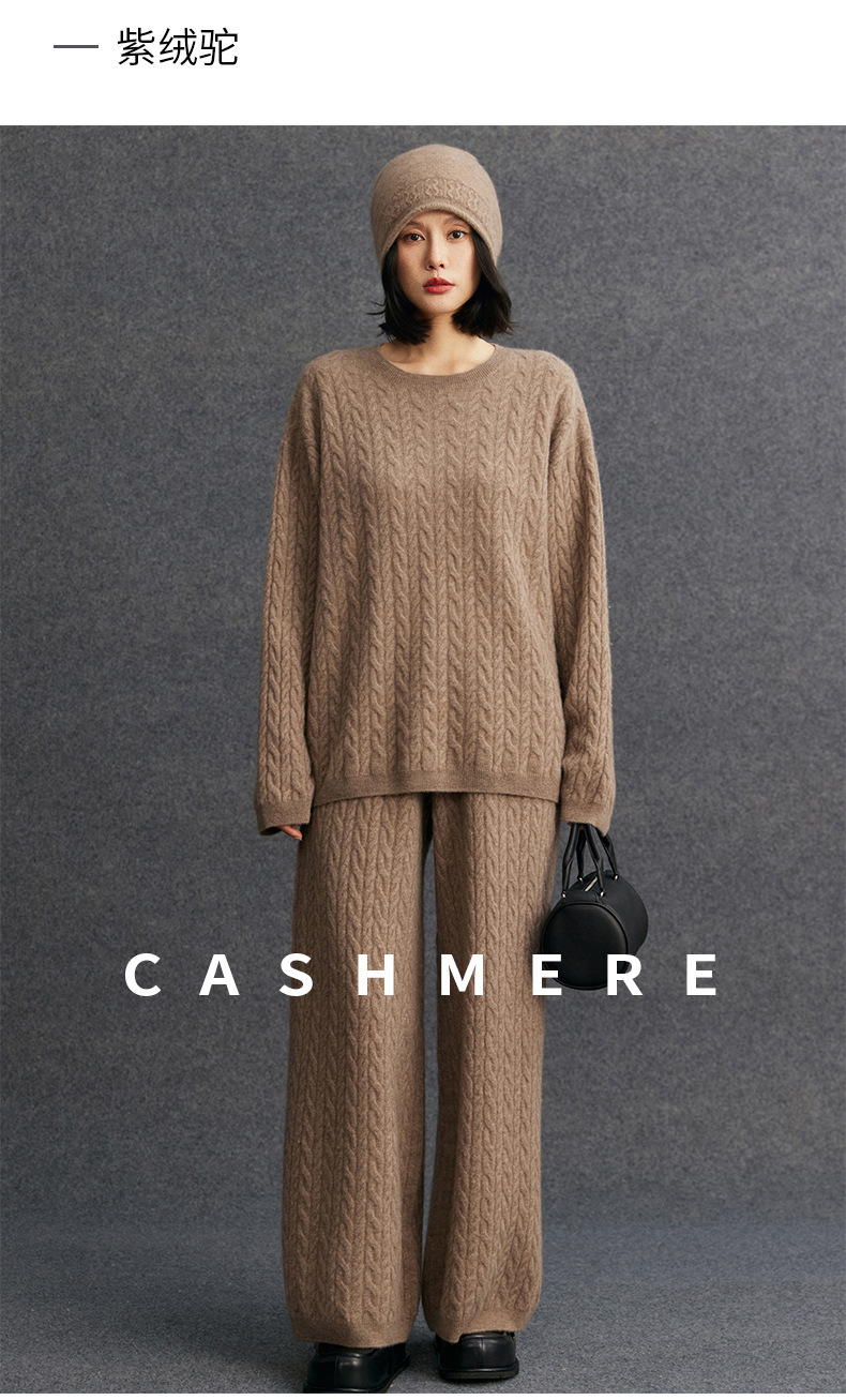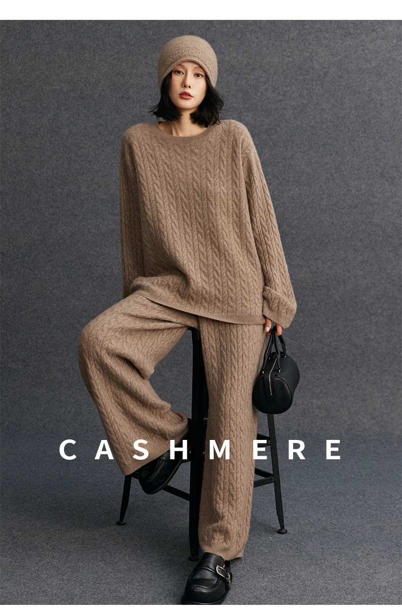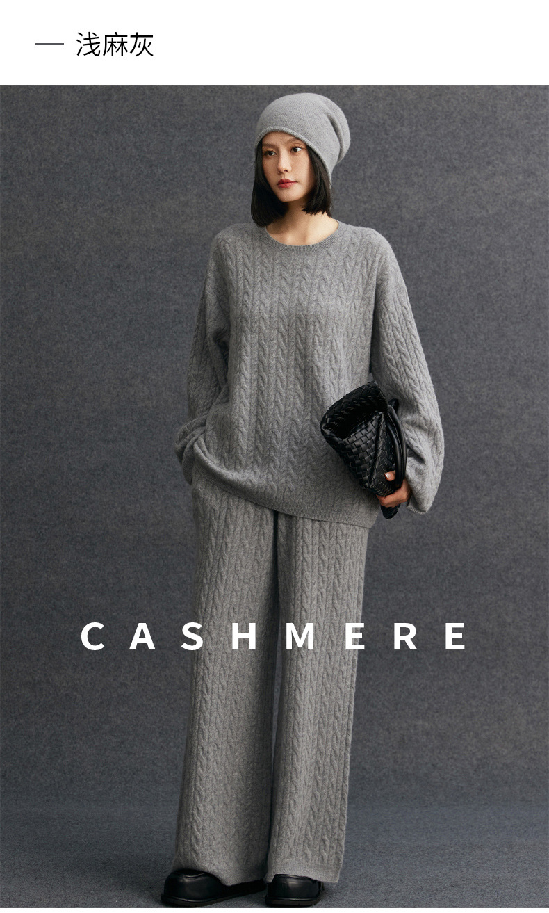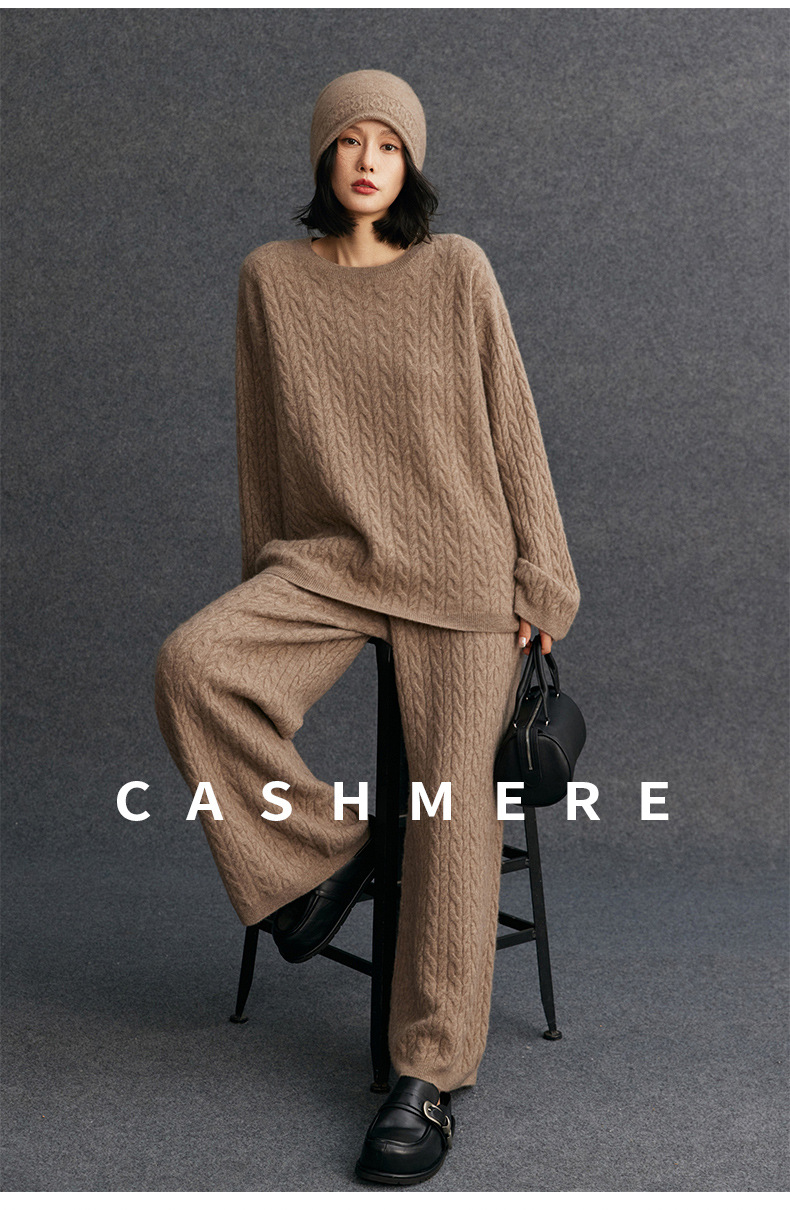 山羊绒女士圆领麻花宽松休闲简约百搭羊绒衫秋冬新款慵懒风针织衫