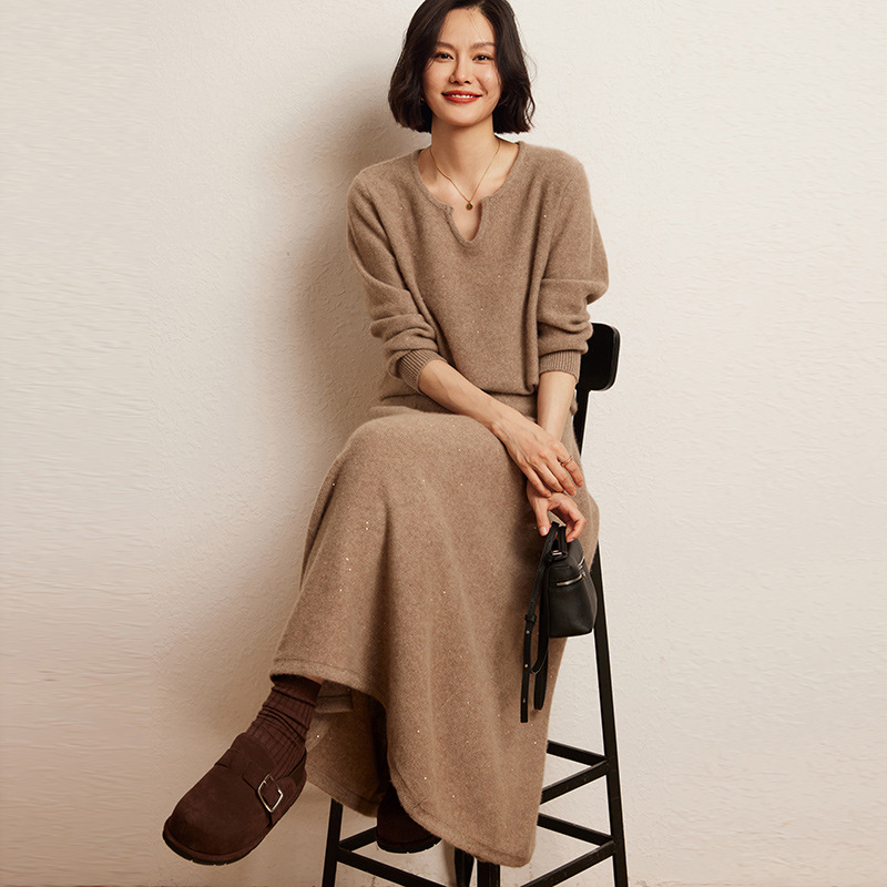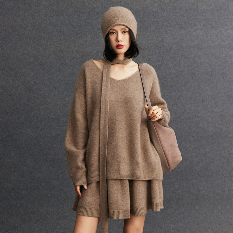 ソフトカシミヤセーターレディースルーズレイジーVネックボトムセーター2023秋冬新作万能カシミヤセーターセーター