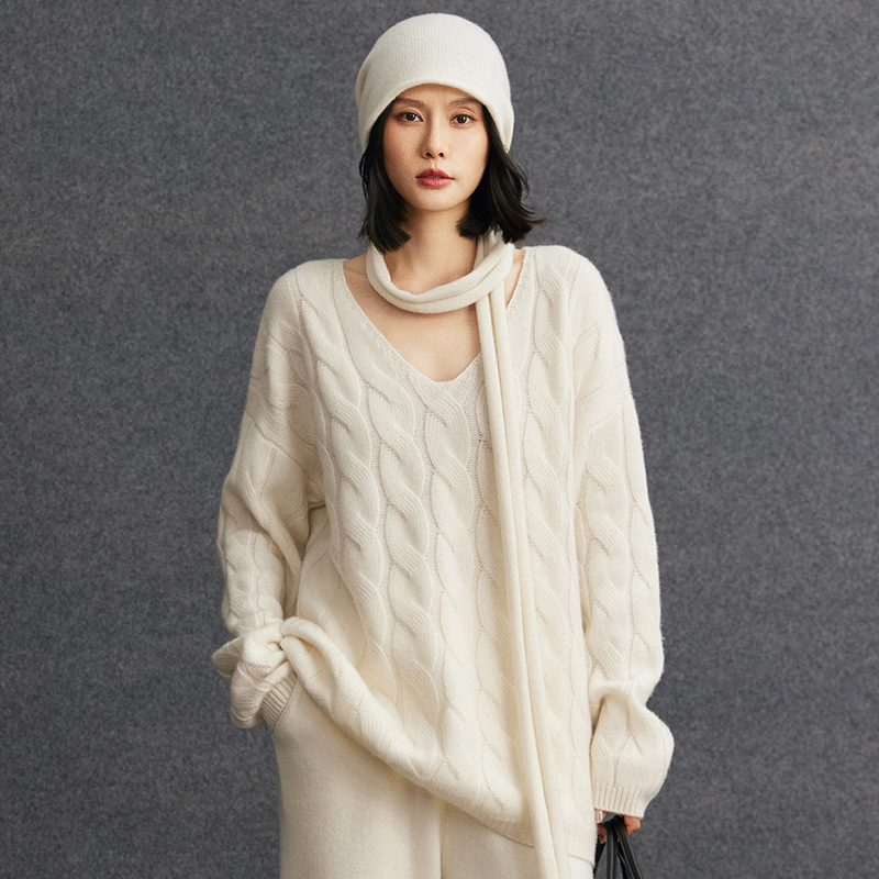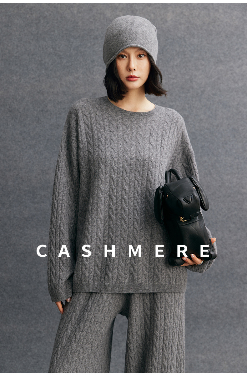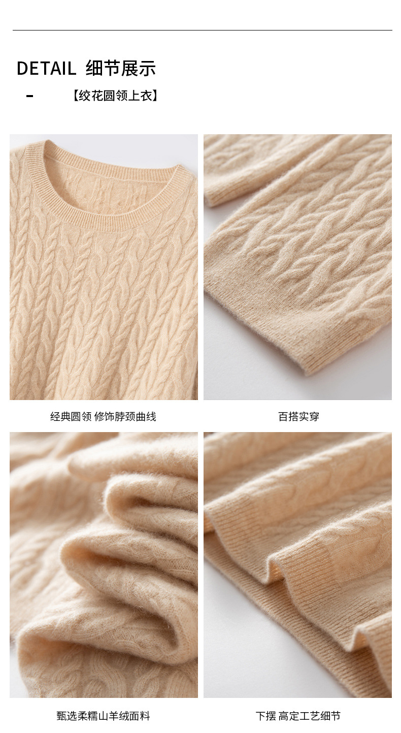 山羊绒女士绞花时尚气质显瘦宽松温柔慵懒百搭羊绒衫秋冬新款打底