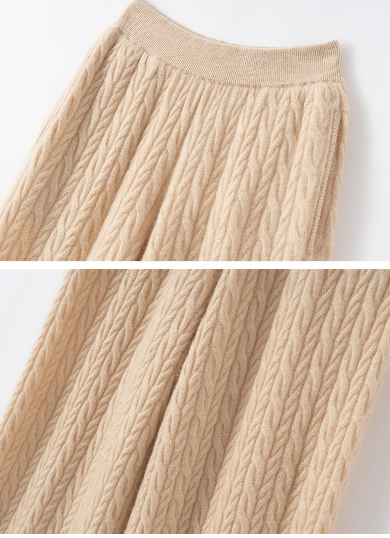 女性の多用途でファッショナブルなメリノウールスカート、プリーツ気質、ハイウエスト、スリム、ロングウールニットアンブレラスカート