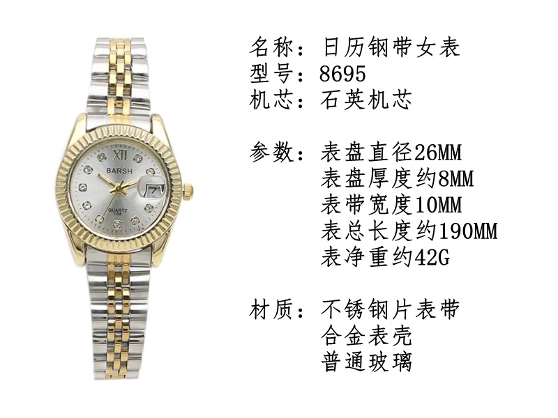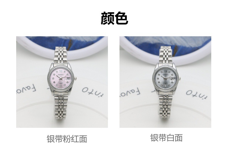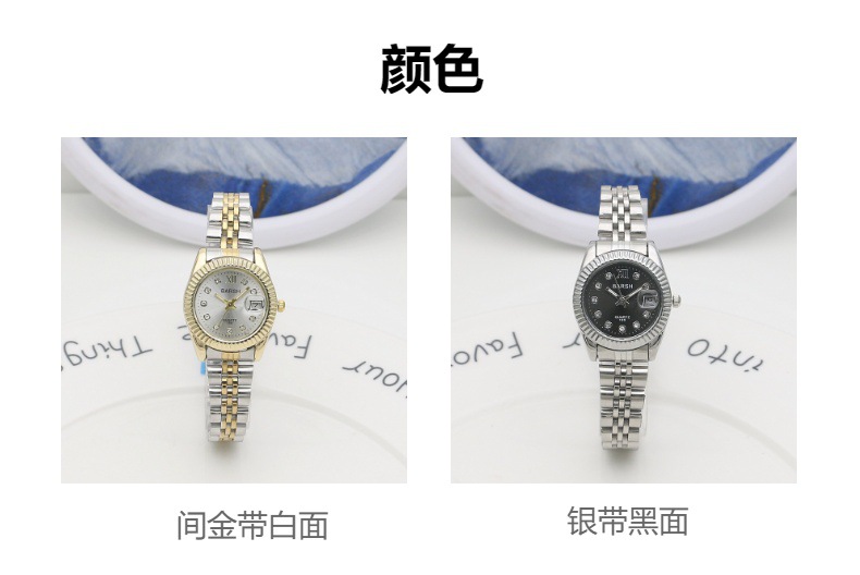 牙边水钻刻度小盘圆形金表简约女士钢带石英表女生石英钢带表8695