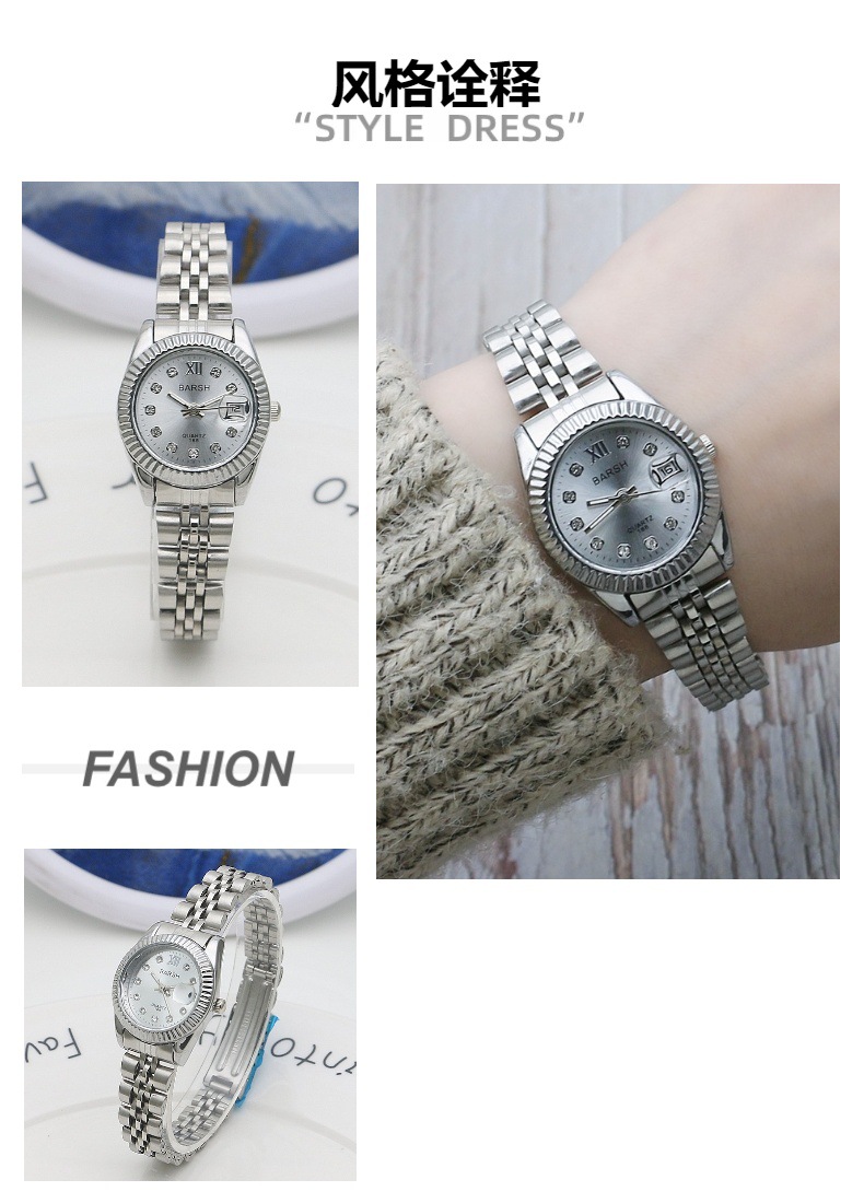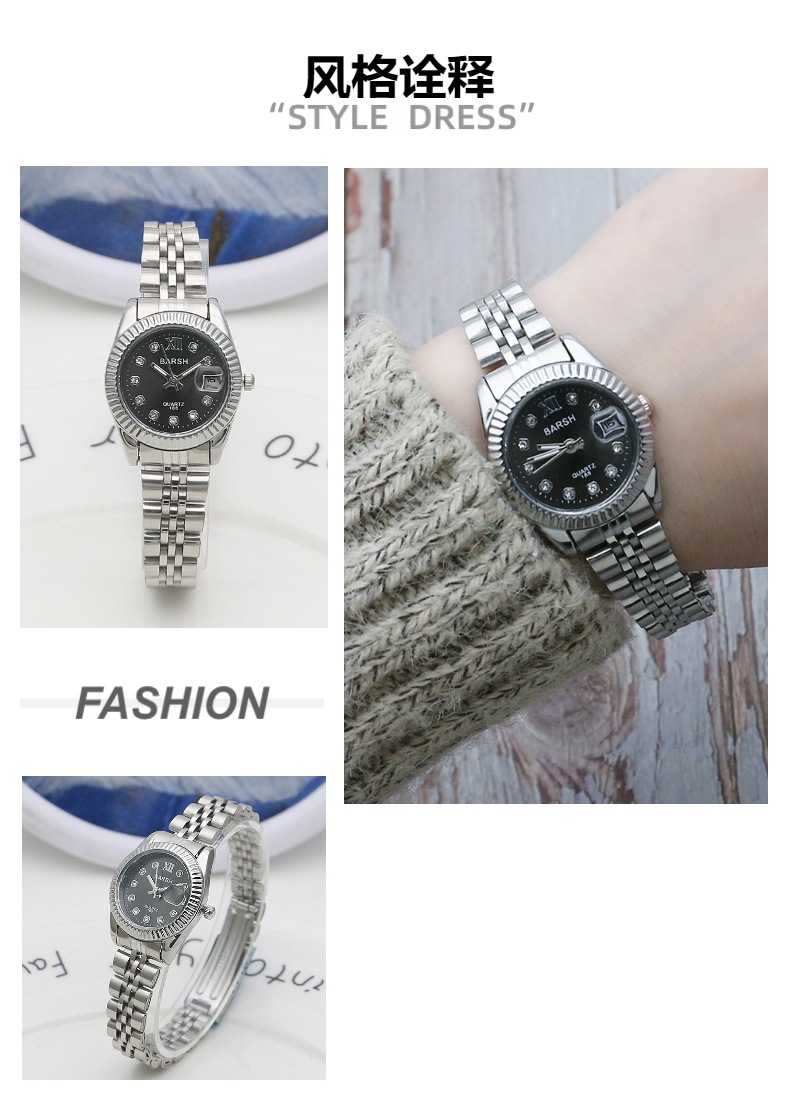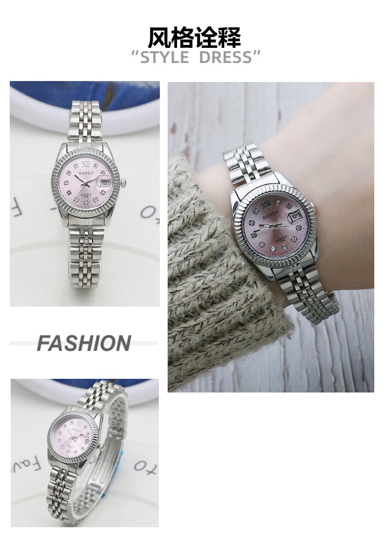 ライブストリーミング卸売ラウンドダイヤモンドウォッチレディースカレンダースチールストラップレトロスタイルシンプルな気質レディースクォーツ時計