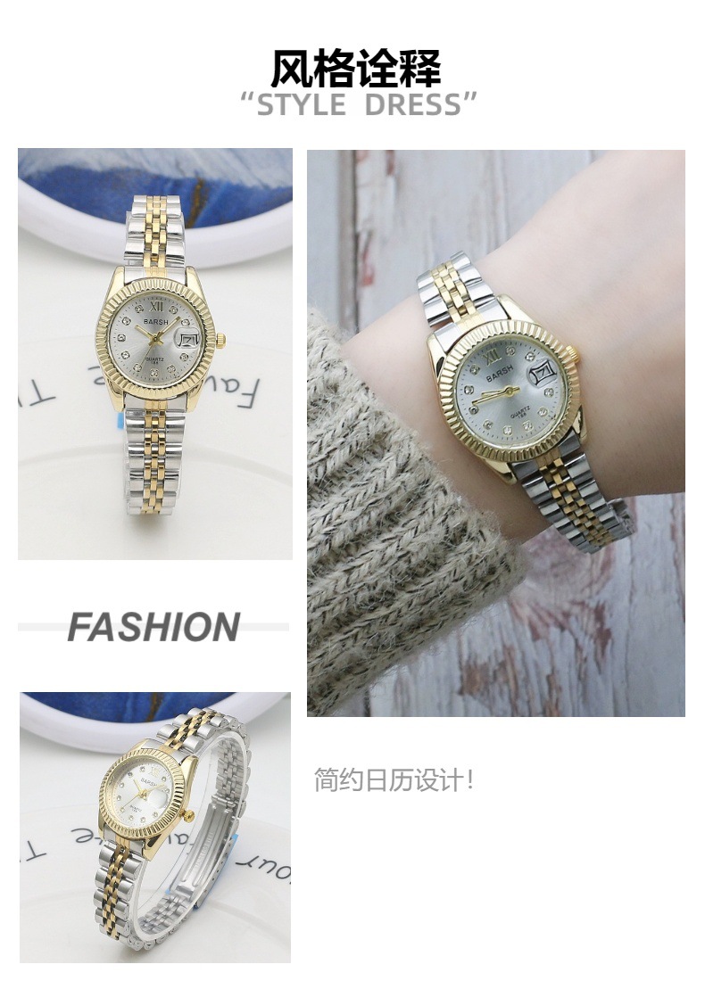 中古ゴールデンスチールバンド日付ダイヤモンド時計レディース和風カジュアル絶妙なクォーツ時計クロスボーダーホットセール卸売価格