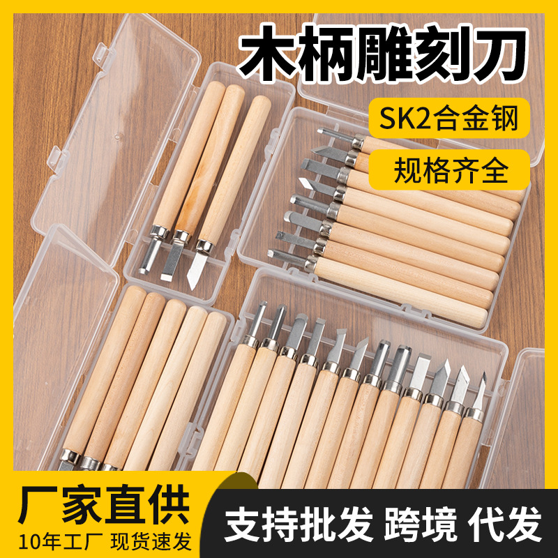 木刻刀木柄雕刻刀套装学生版画工具制作专用雕刻刀PVC胶板木刻板
