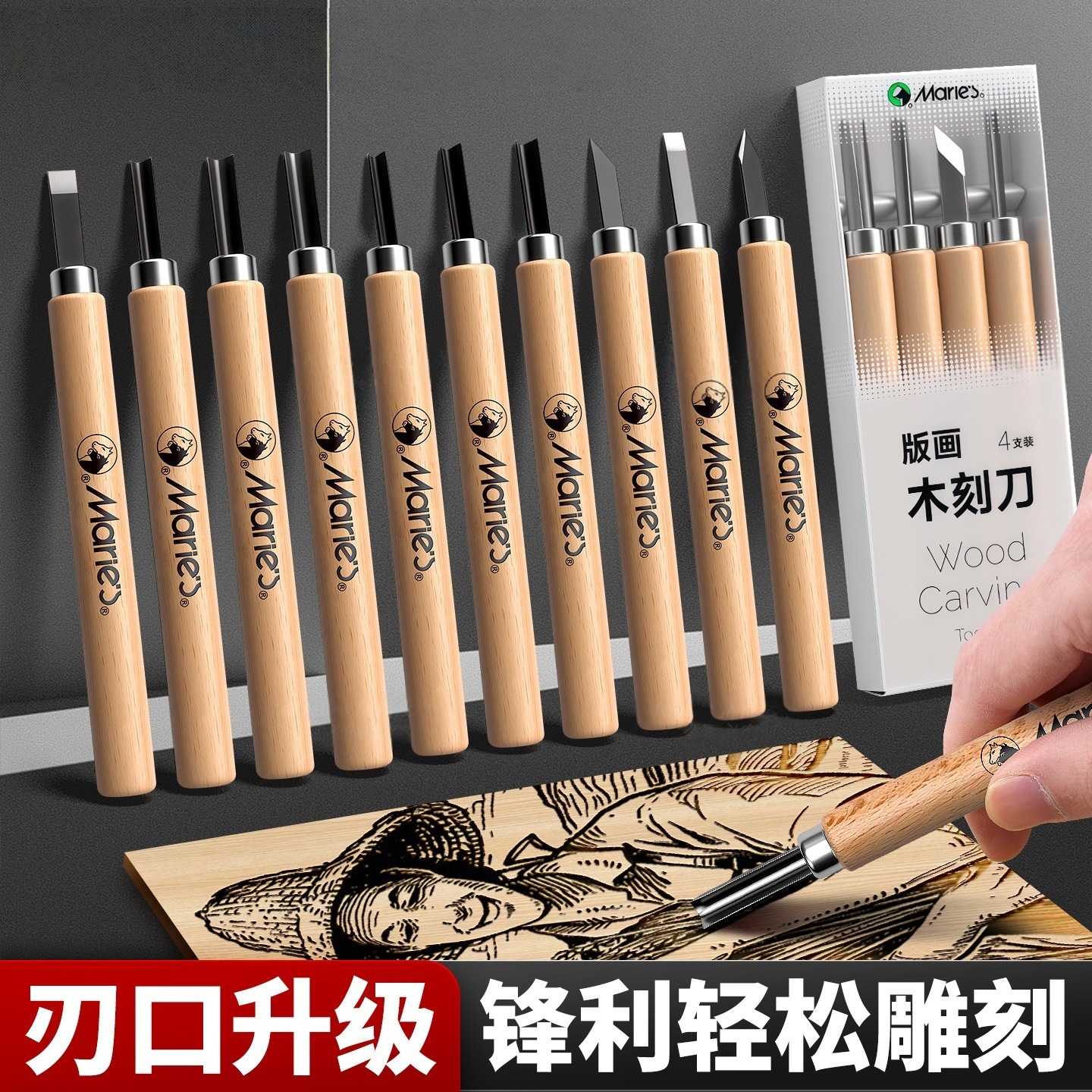 马利木刻刀版画工具美术生新款木质美工刀雕刻橡皮章木雕篆刻刀