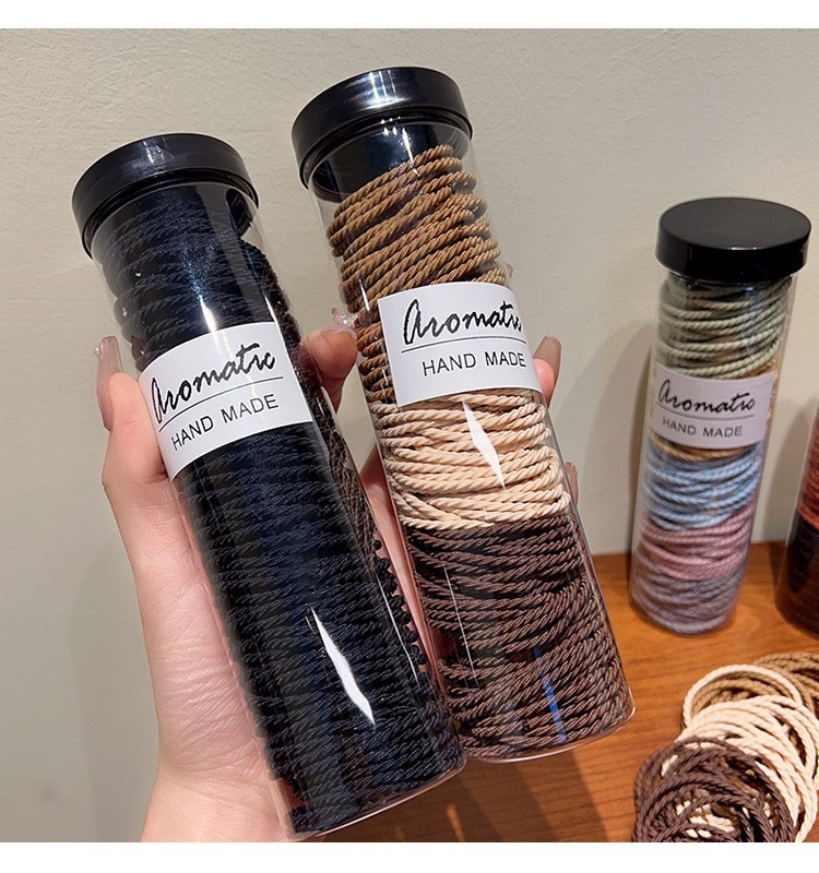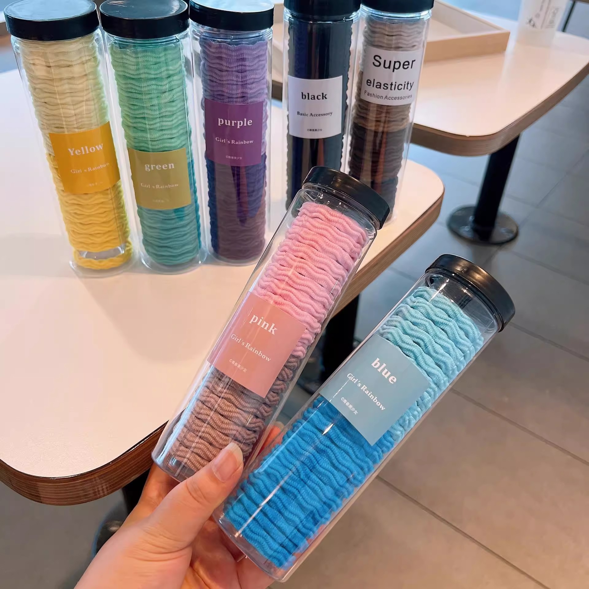韩系罐装螺纹波浪元气感马卡龙毛巾圈头扎皮筋无痕发绳桶装20根