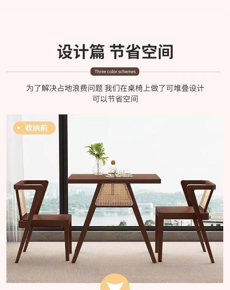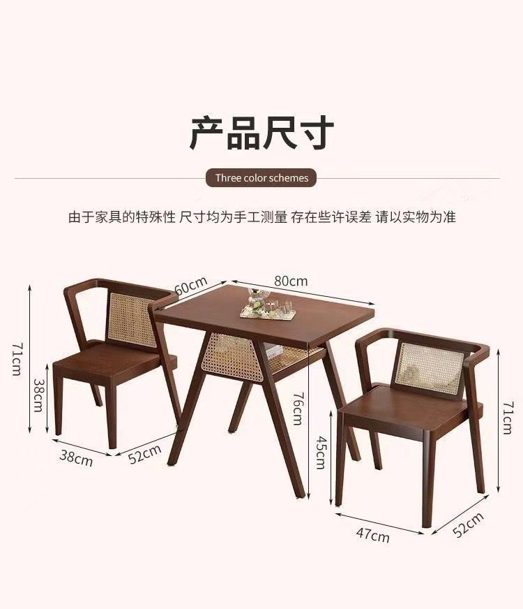 颜色 胡桃色组合三件套(编藤款),原木色组合三件套(编藤款),胡桃色组合三件套(非编藤款),原木色组合三件套(非编藤款),单桌-胡桃色 (非编藤款),单桌-原木色 (非编藤款),注意:本桌使用白蜡木与橡木共同组合制作