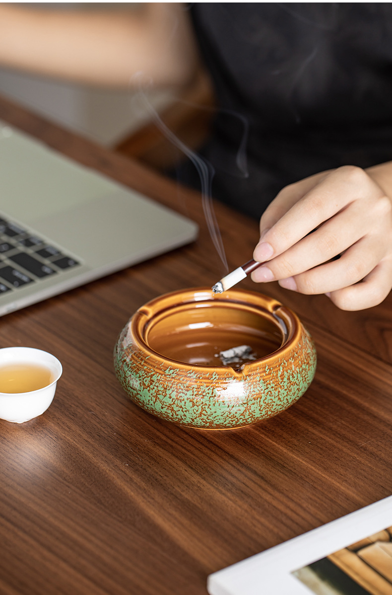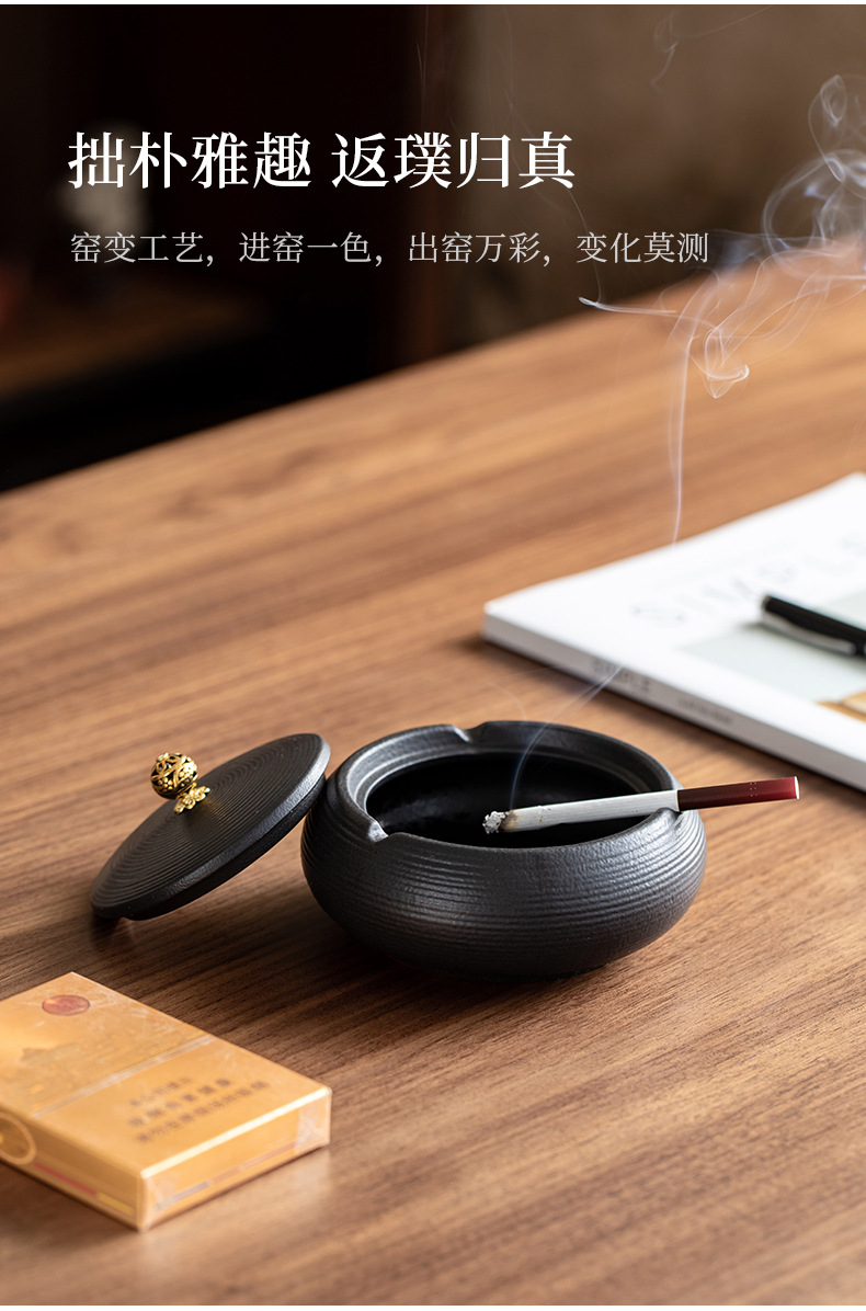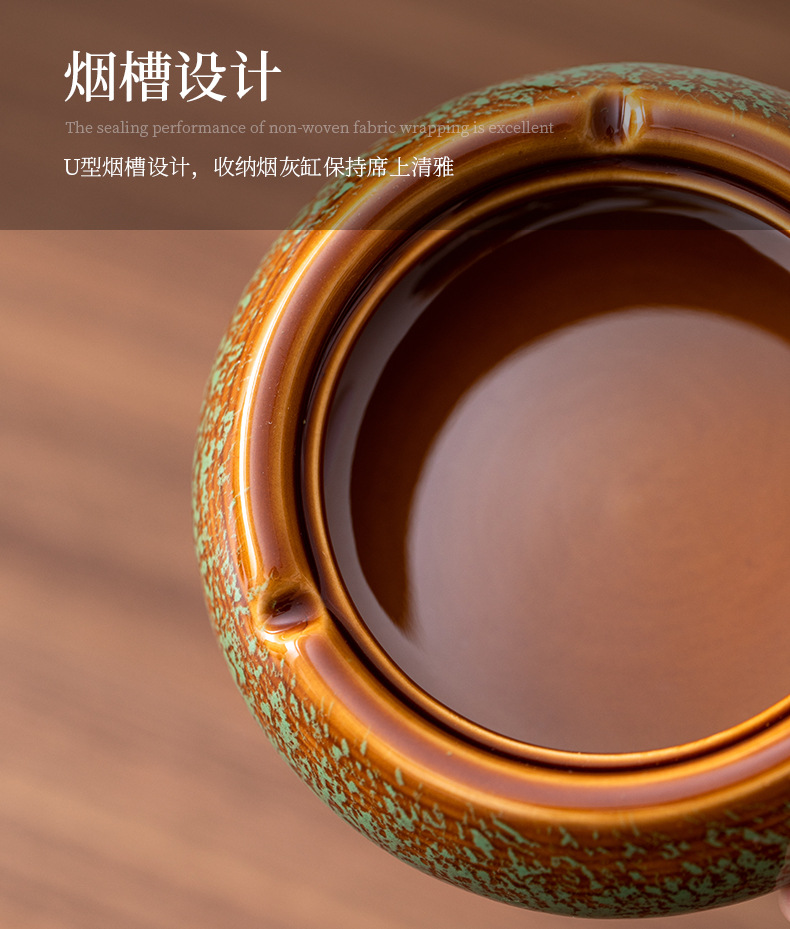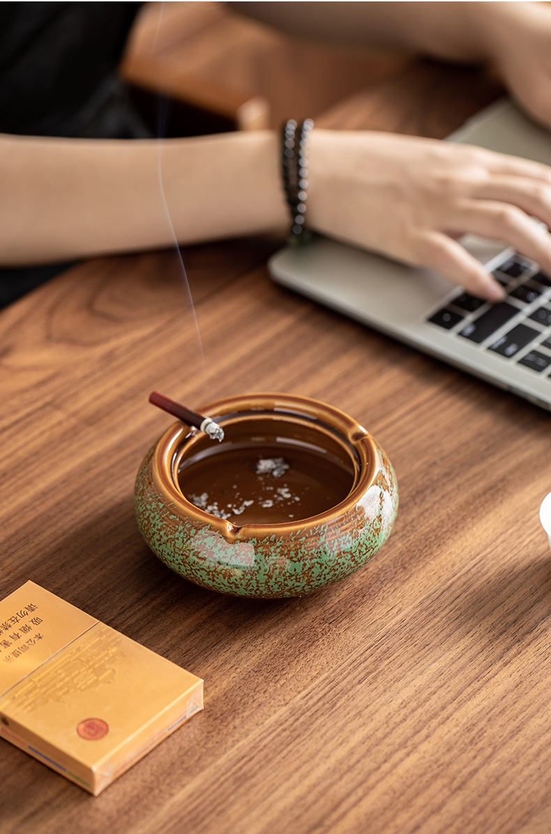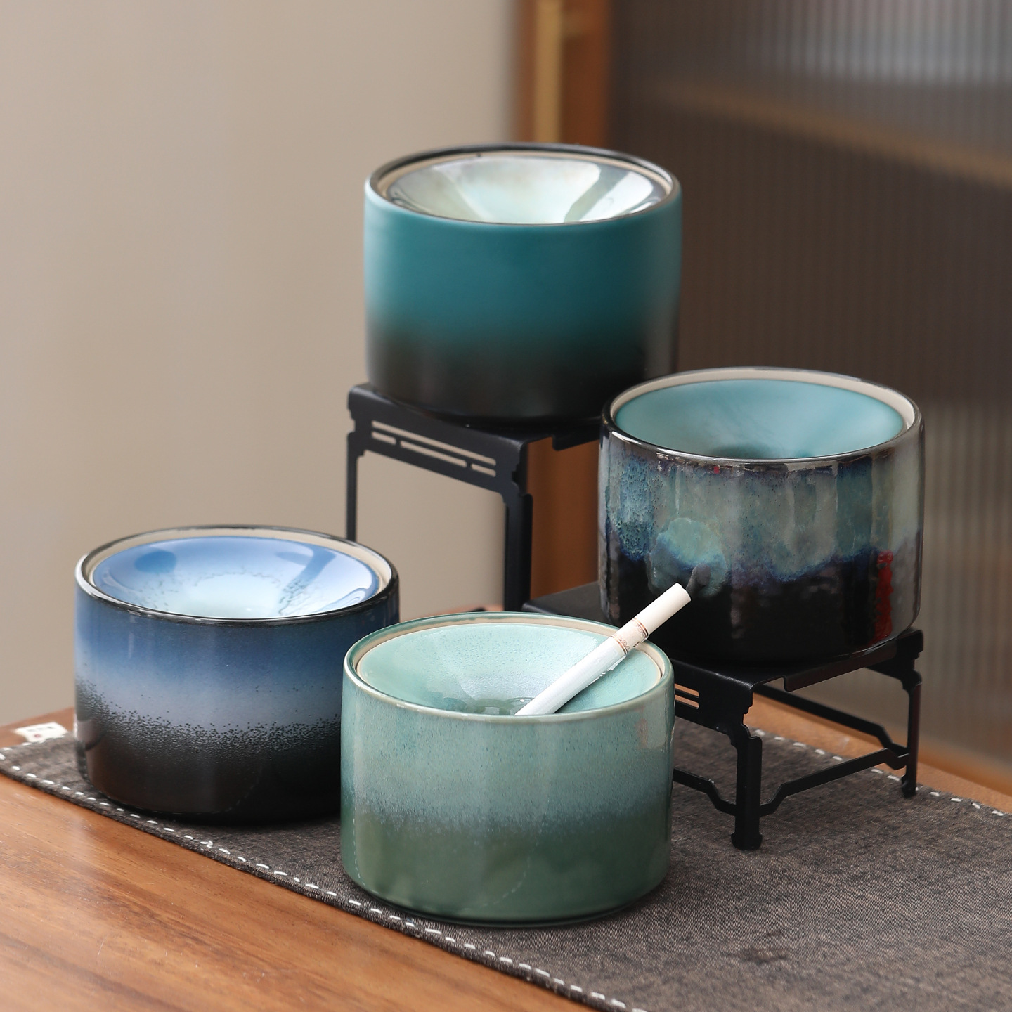 晨翔创意窑变烟灰缸家用客厅办公室高级感摆件陶瓷烟缸带盖防飞灰