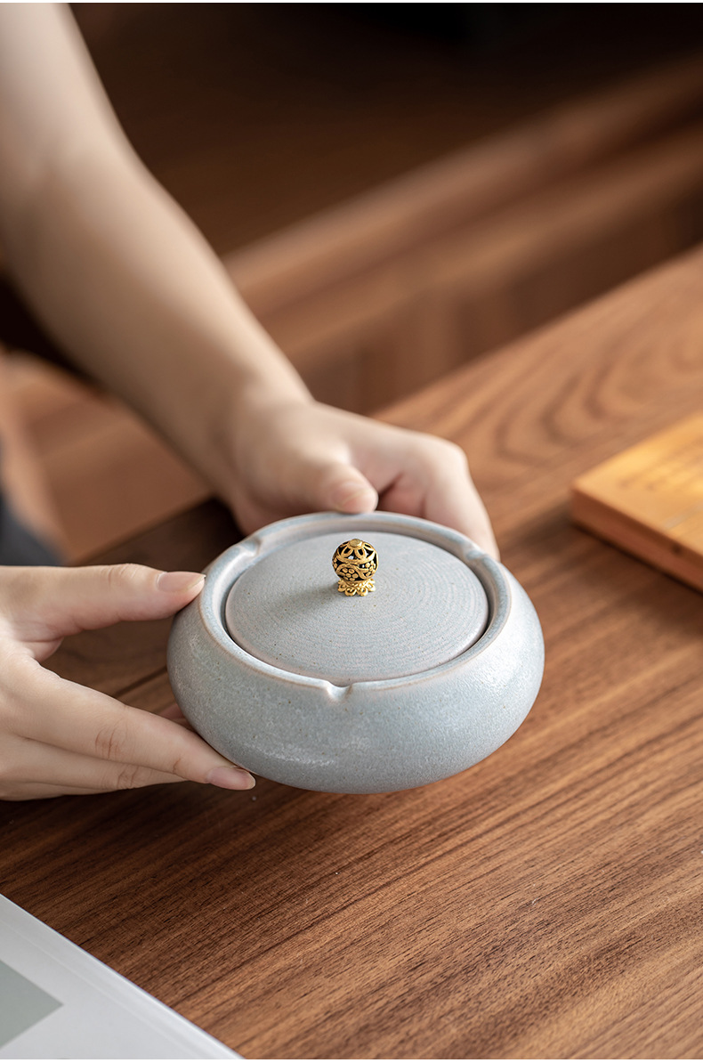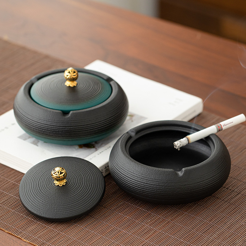 墨円灰皿家庭用中国式陶磁器蓋付き防風灰かめオフィス軽豪華高級大装飾灰皿