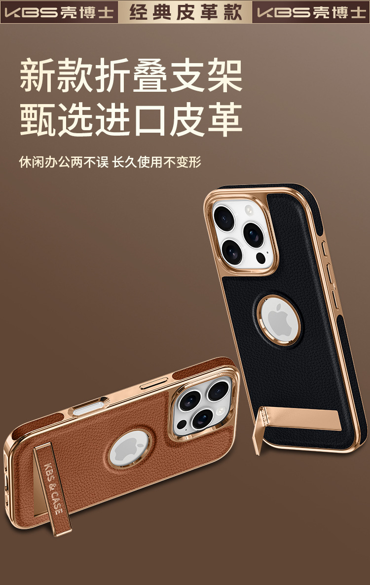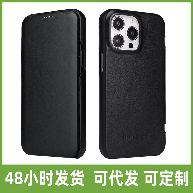 适用iphone15pro皮革手机壳苹果全型号支架一体全包防摔新款商务